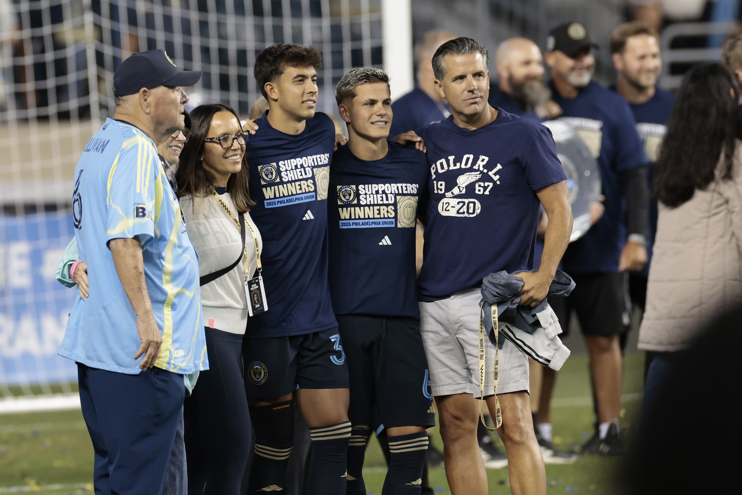 Cavan Sullivan (second from right) with family including father Brendan (right), brother Quinn (next to Cavan), and mother Heike (next to Quinn) after the Union clinched the Supporters’ Shield in October.