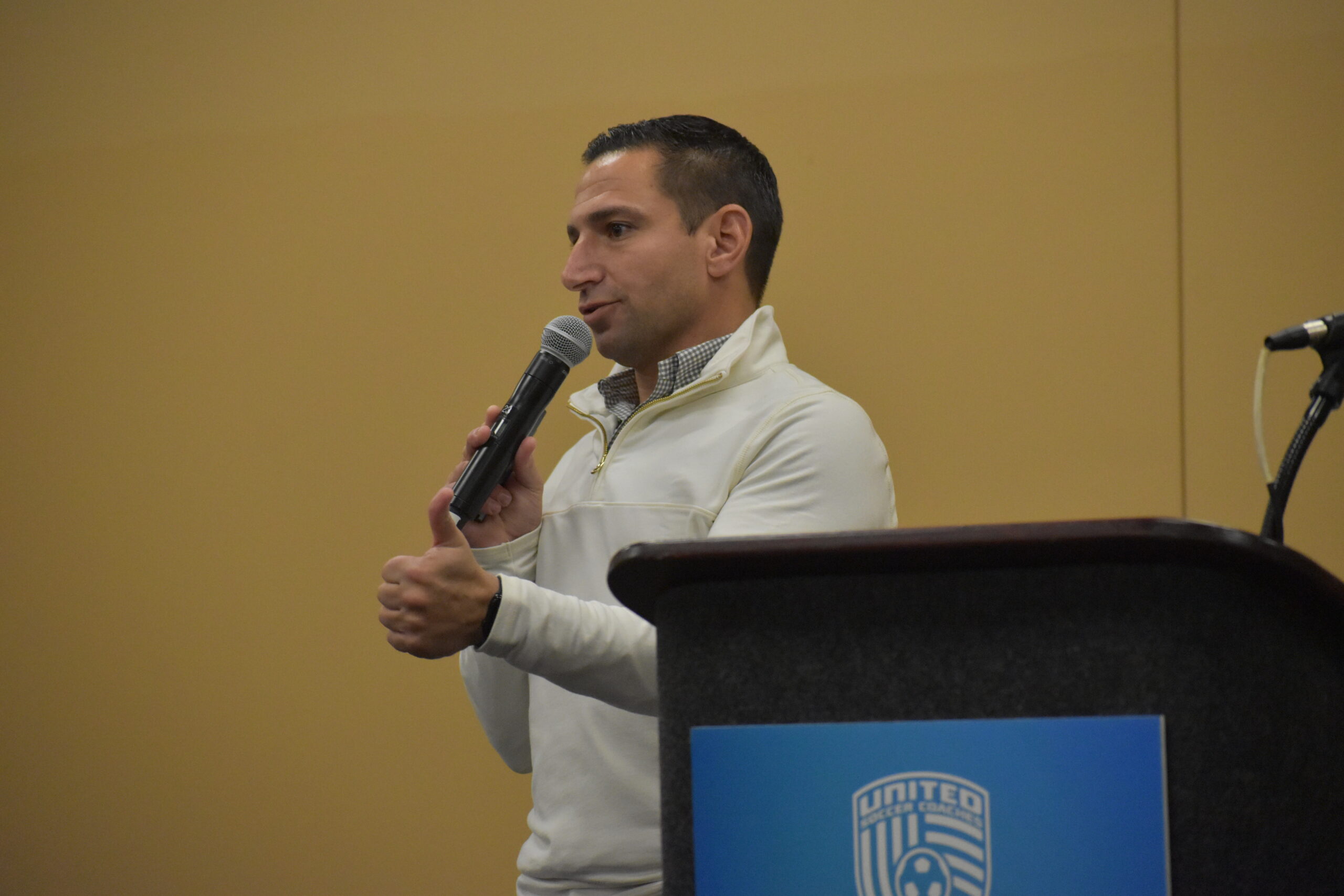 Union director of academy and professional development Jon Scheer speaking at the United Soccer Coaches Convention in Philadelphia earlier this month.