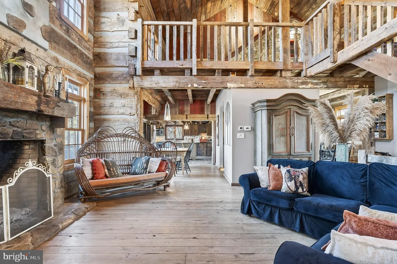 Built in 1770 and since expanded, this Colonial farmhouse blends modern and historic elements like stainless steel appliances with stone walls and exposed beams. The four-bedroom home has a finished walkout basement with a full bathroom, an above-ground saltwater pool, a deck, and a two-story treehouse. The 7.6-acre property is split into two parcels, which can accommodate another house. The property has a chicken coop, paddocks, and a five-stall barn.