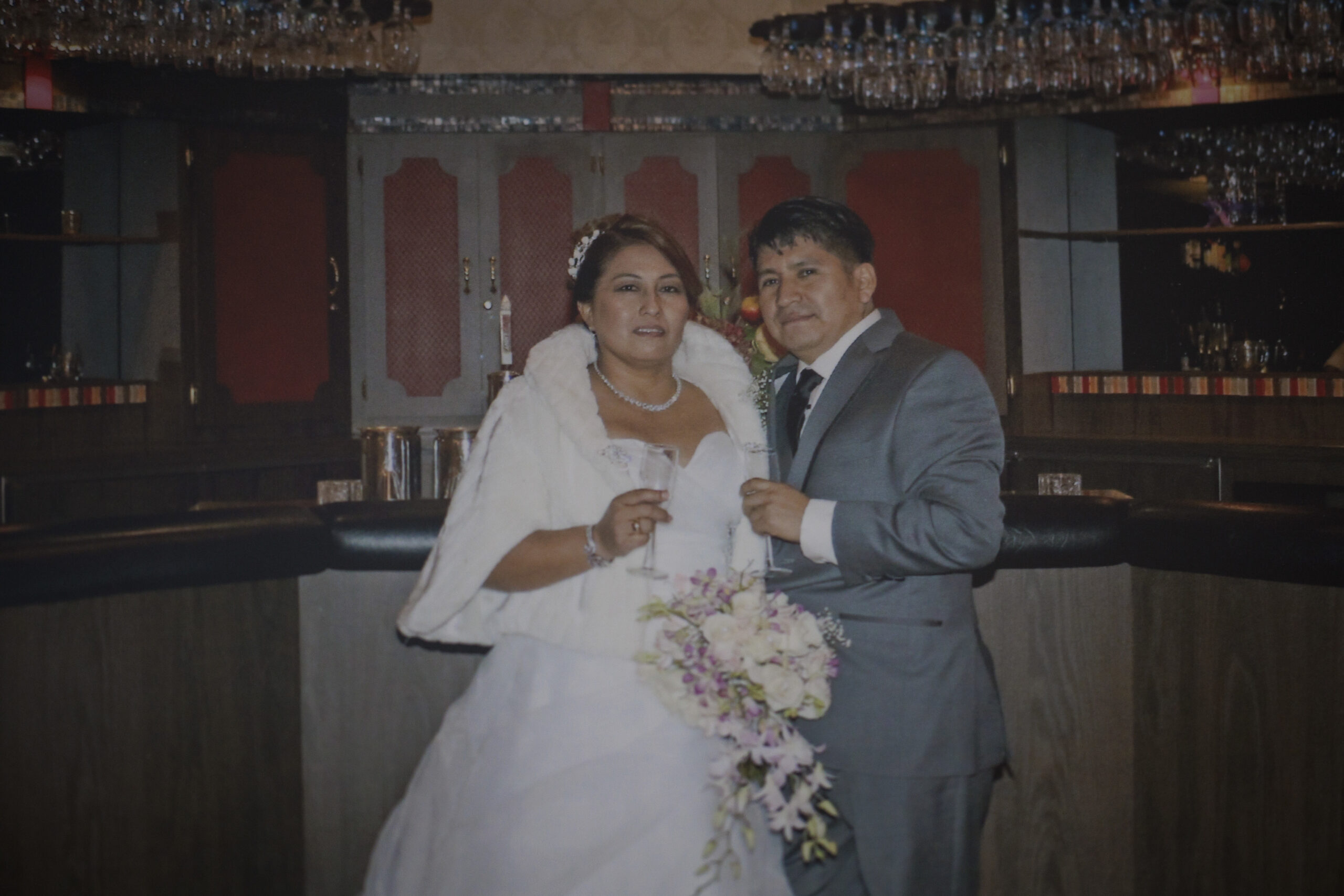 Gimena Morales Antezana and Johny Merida Aguilar’s wedding photos hang on the wall at their home in Northeast Philadelphia.