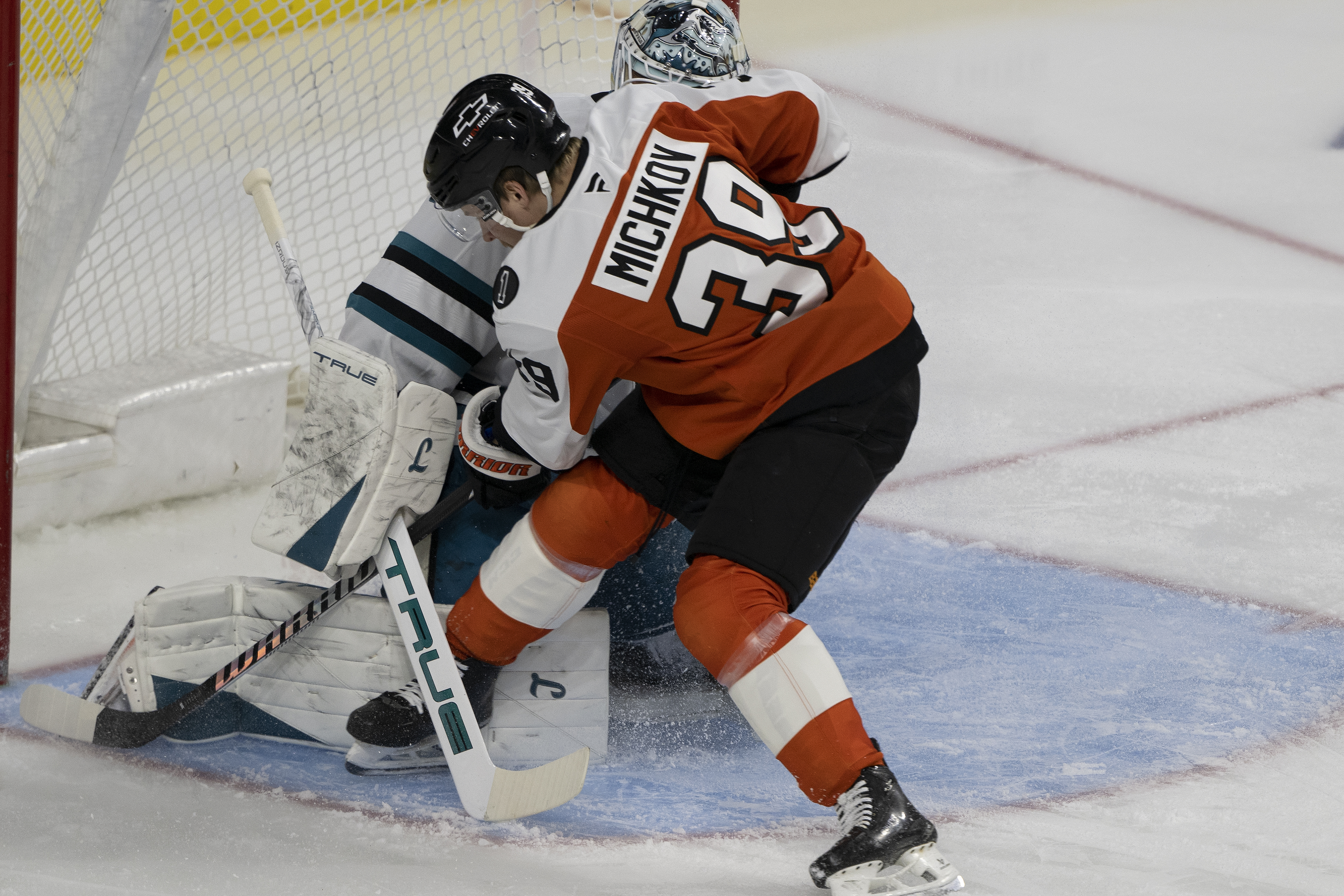 The Flyers came out like it was a feeding frenzy at Xfinity Mobile Arena, putting 11 shots on San Jose goalie Alex Nedeljkovic before the Sharks got their first one more than 11 minutes into the game. The only problem? Their first shot was also a goal.
