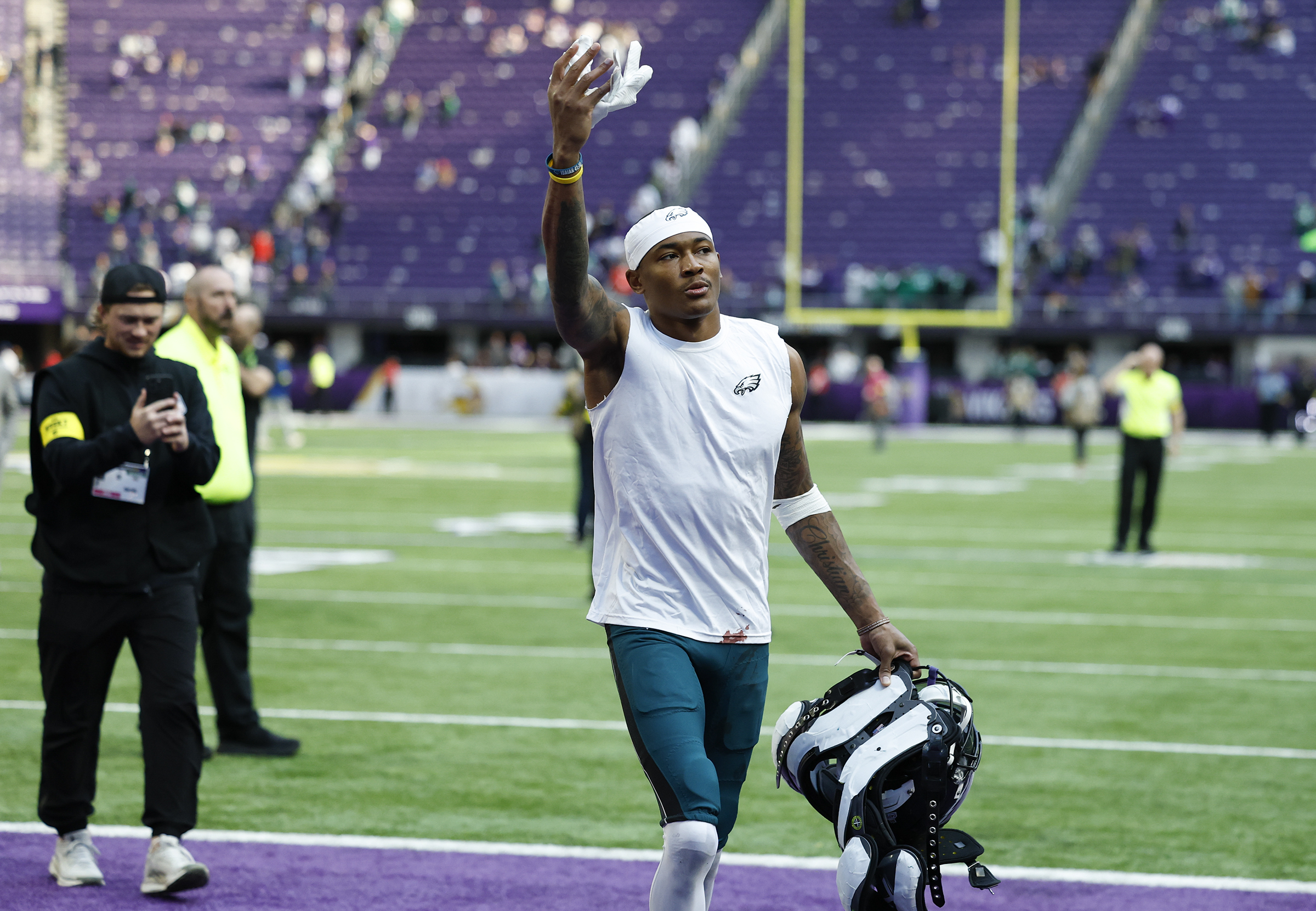 On Sunday, there was one major offensive starter still on the field for the Eagles: DeVonta Smith.