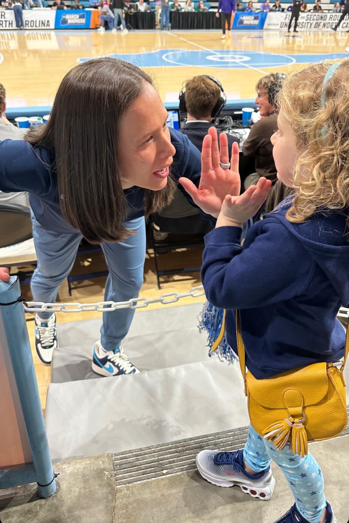 Columbia women’s basketball coach and King of Prussia native Megan Griffith (left) high-fives her niece, Carmen, who calls her Titi.