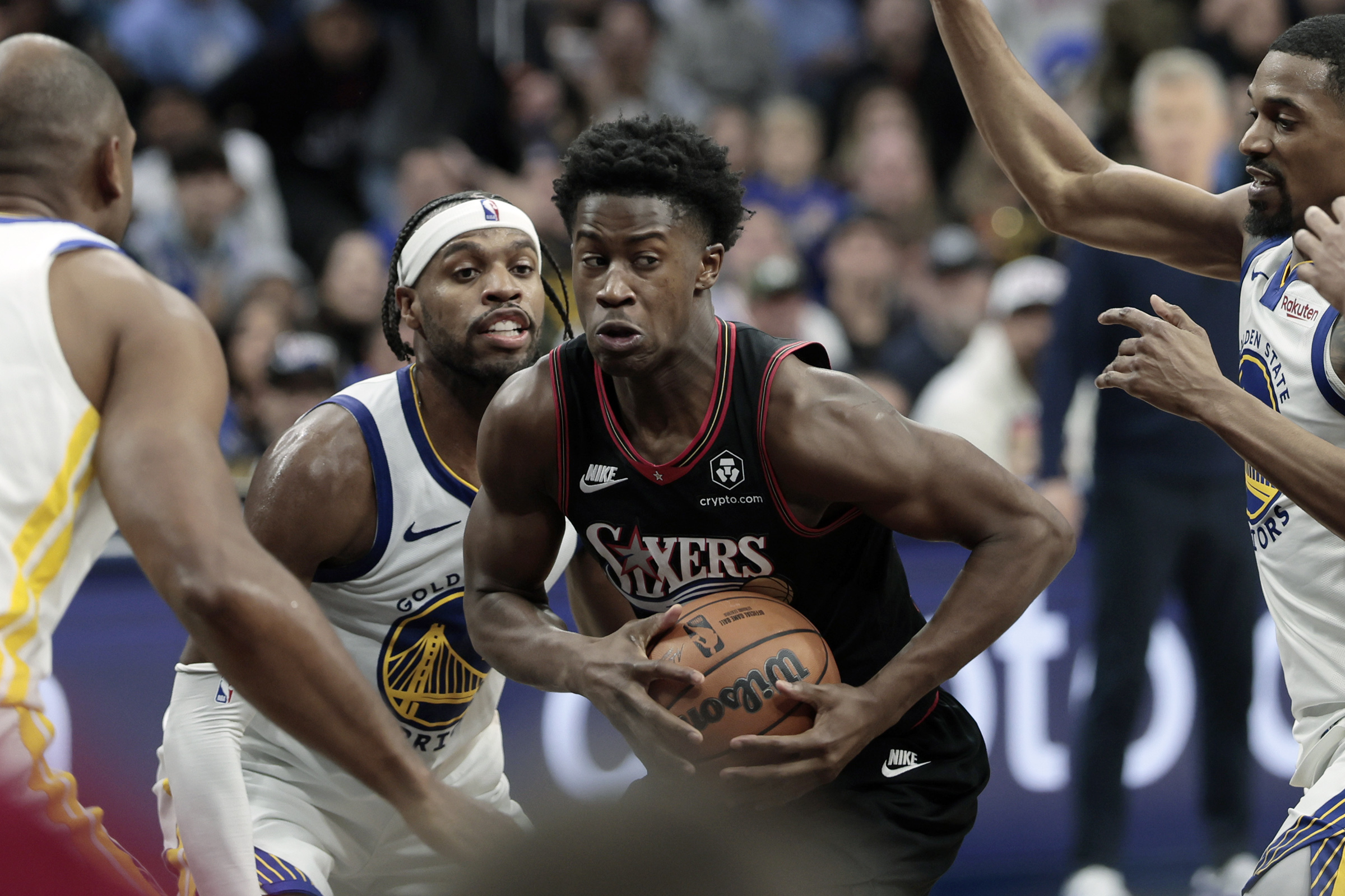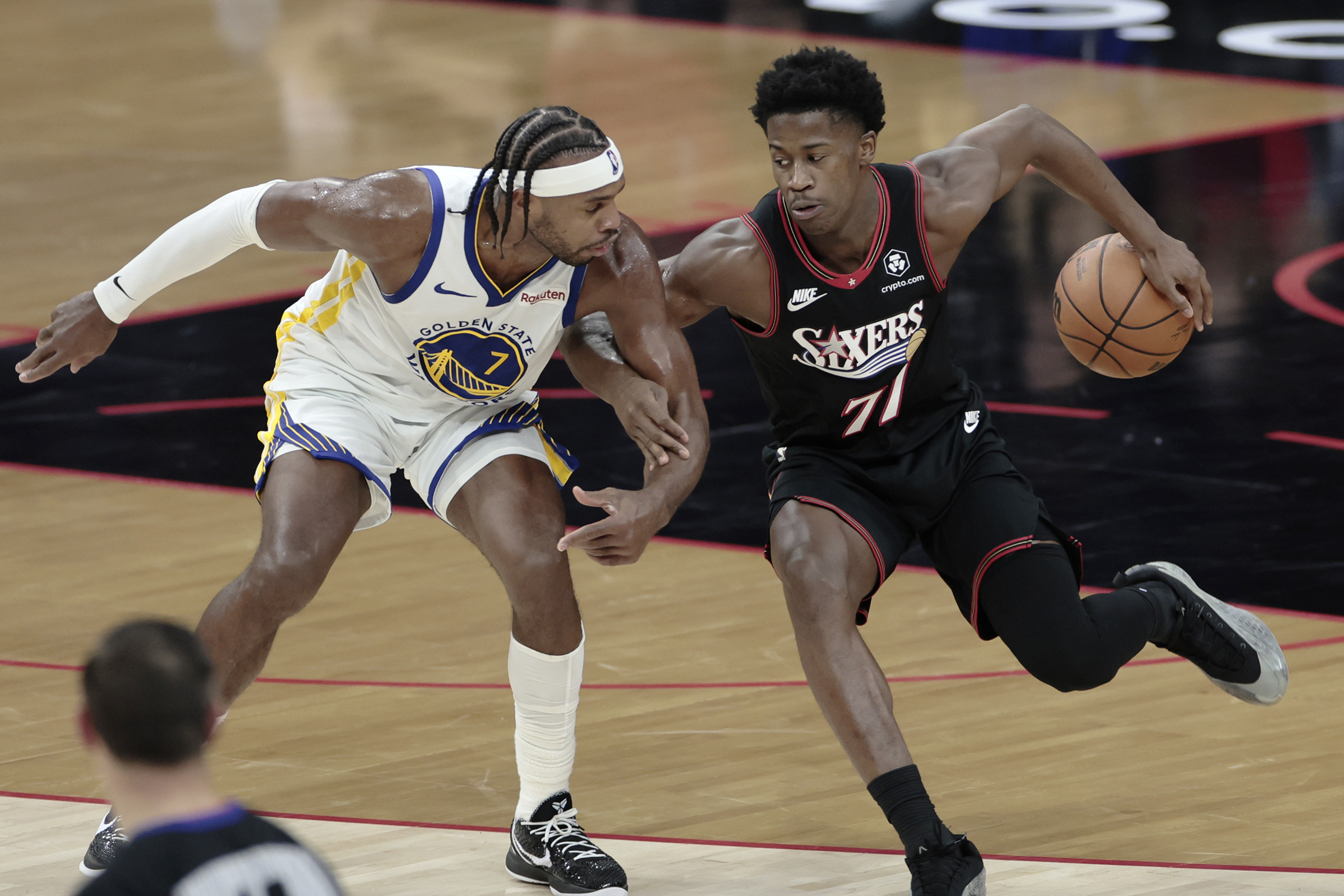 VJ Edgecombe did not have the best game of his rookie season against Buddy Hield (left) and the Warriors, but continued to make a substantial impact.
