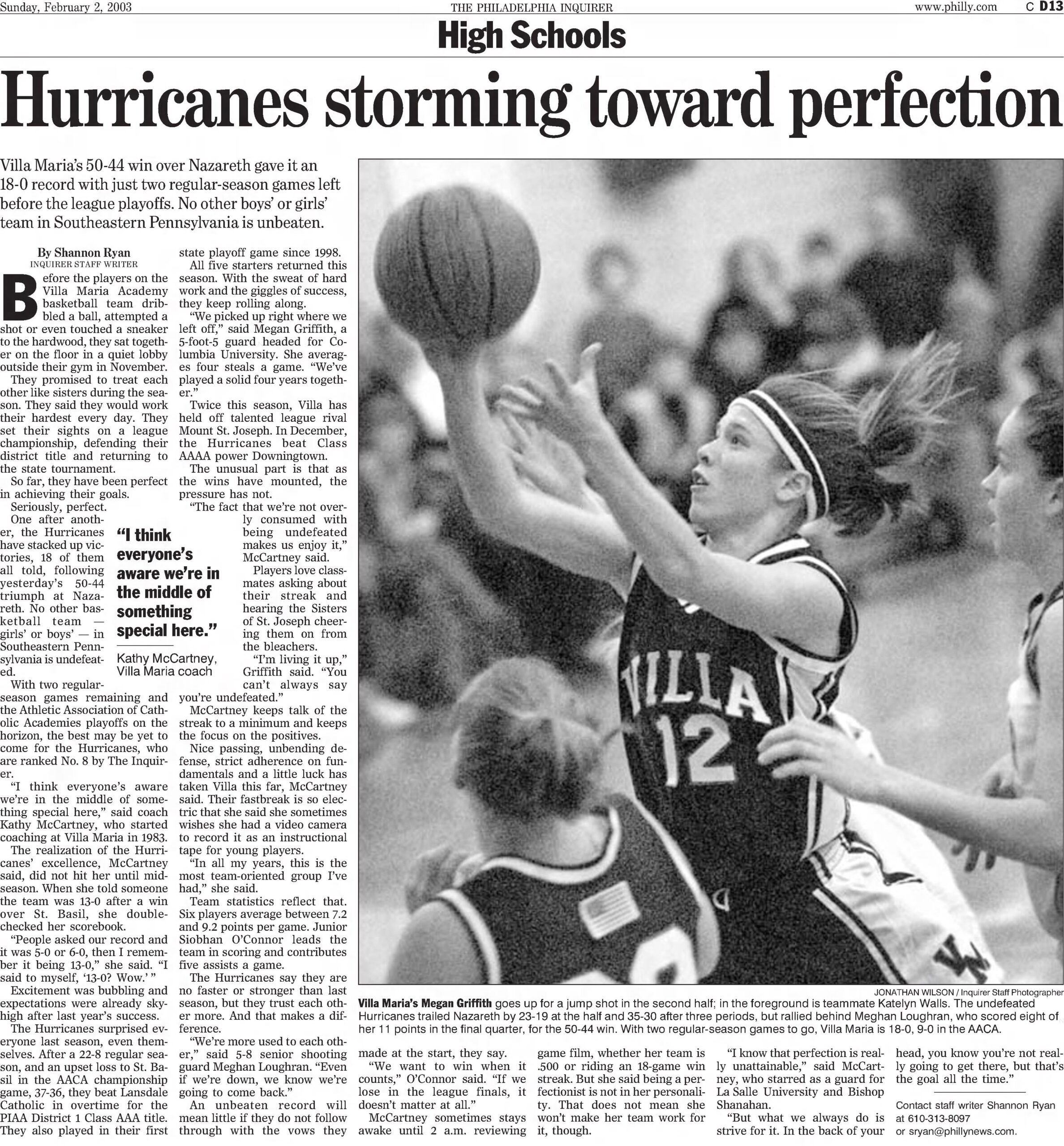 McCartney still texts Megan and her parents, and loves telling friends “that’s one of my kids” while watching Columbia play. Megan’s godmother, who lives in Australia, wakes up at 4 a.m. to tune in to games. Supporters are in the stands whenever Columbia plays Penn in Philly, where Griffith takes pride in those who knew her as a player recognizing similar qualities in her teams.