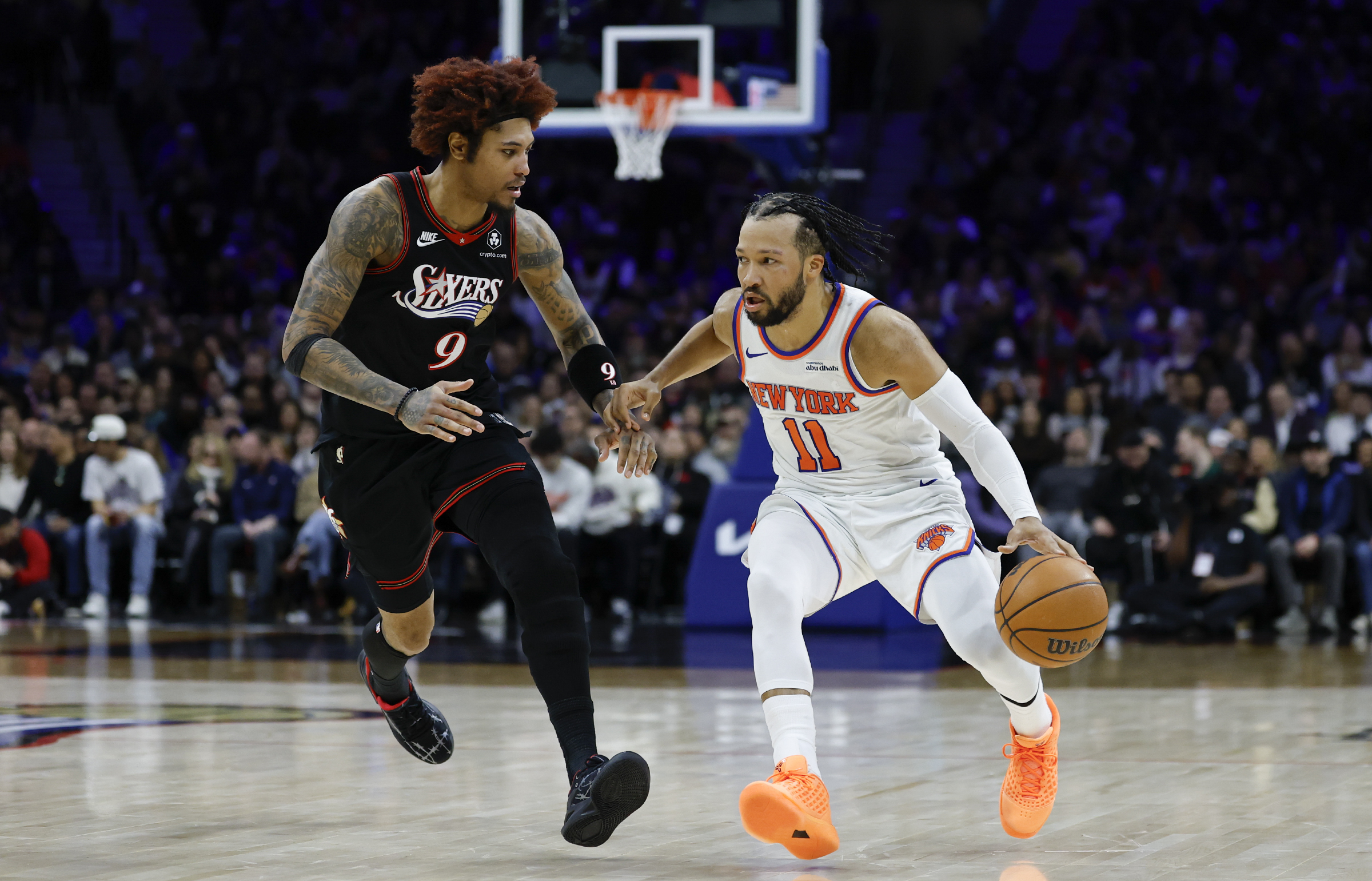 Kelly Oubre Jr. of the Sixers guarding the Knicks’ Jalen Brunson on Saturday.