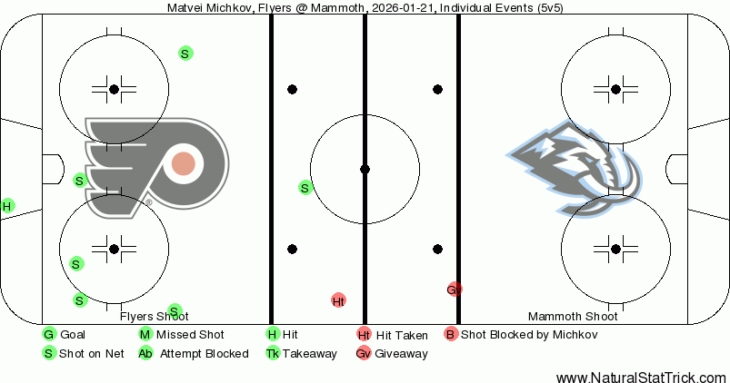 Although Natural Stat Trick has the Flyers with 51.74% of the shot attempts when Michkov is on the ice — tops on the team — and an expected goal-share of 53.6%, which is No. 2 among players who have played at least five games, he has struggled defensively and shown a tendency to cherry-pick at times.
