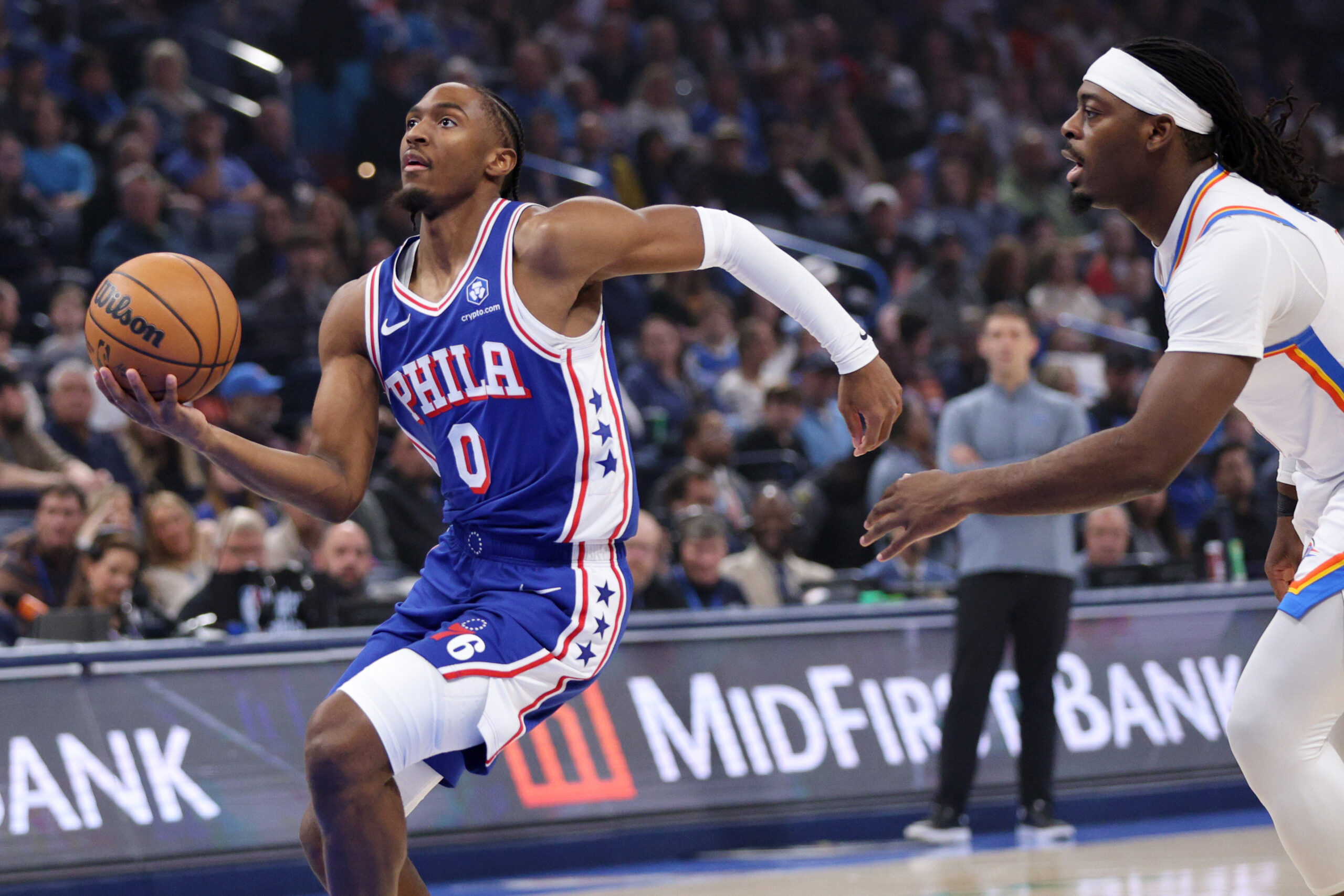 The teams played through six lead changes and 12 ties before Oklahoma City took a 64-62 advantage into the intermission. Afterward, the Thunder ramped up their defense, taking the ball out of hands of Tyrese Maxey, who had 23 points on 8-for-10 shooting in the first half. The Sixers point guard was held scoreless on 0-for-3 shooting in the third quarter, while the Sixers were outscored 38-24. Maxey added five points in the fourth to finish with a team-high 28 points on 10-for-18 shooting — including missing five of seven three-pointers — to go with five assists and a game-high four steals.