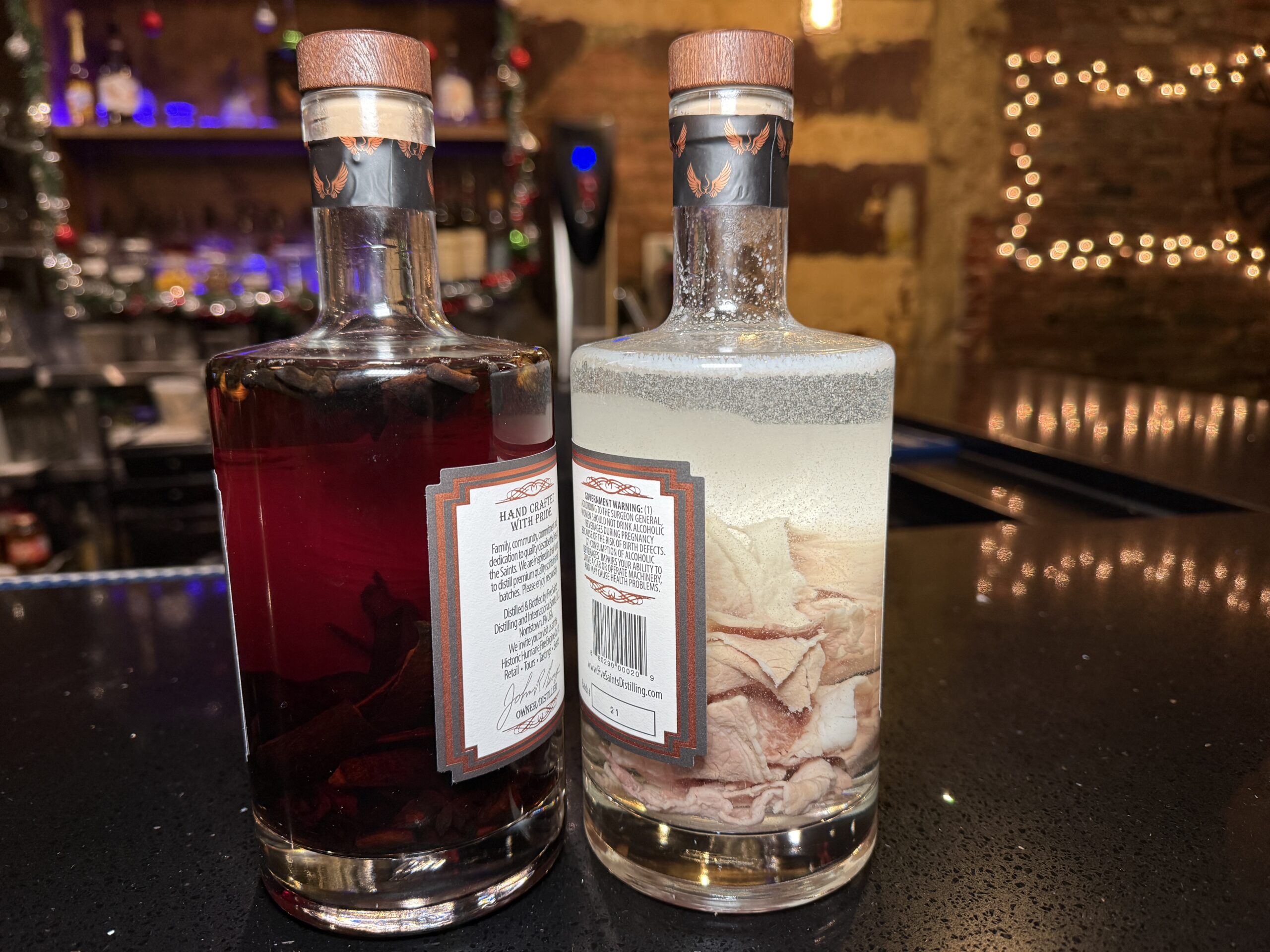 Next, toasted spices are added to the bottle: fresh ginger, star anise, coriander, fennel seed, cardamon, cloves, and cinnamon. “The exact same spices for when I made pho,” said Nguyen. The concoction steeps for another three weeks, “until it’s the color of Coke,” said Nguyen.