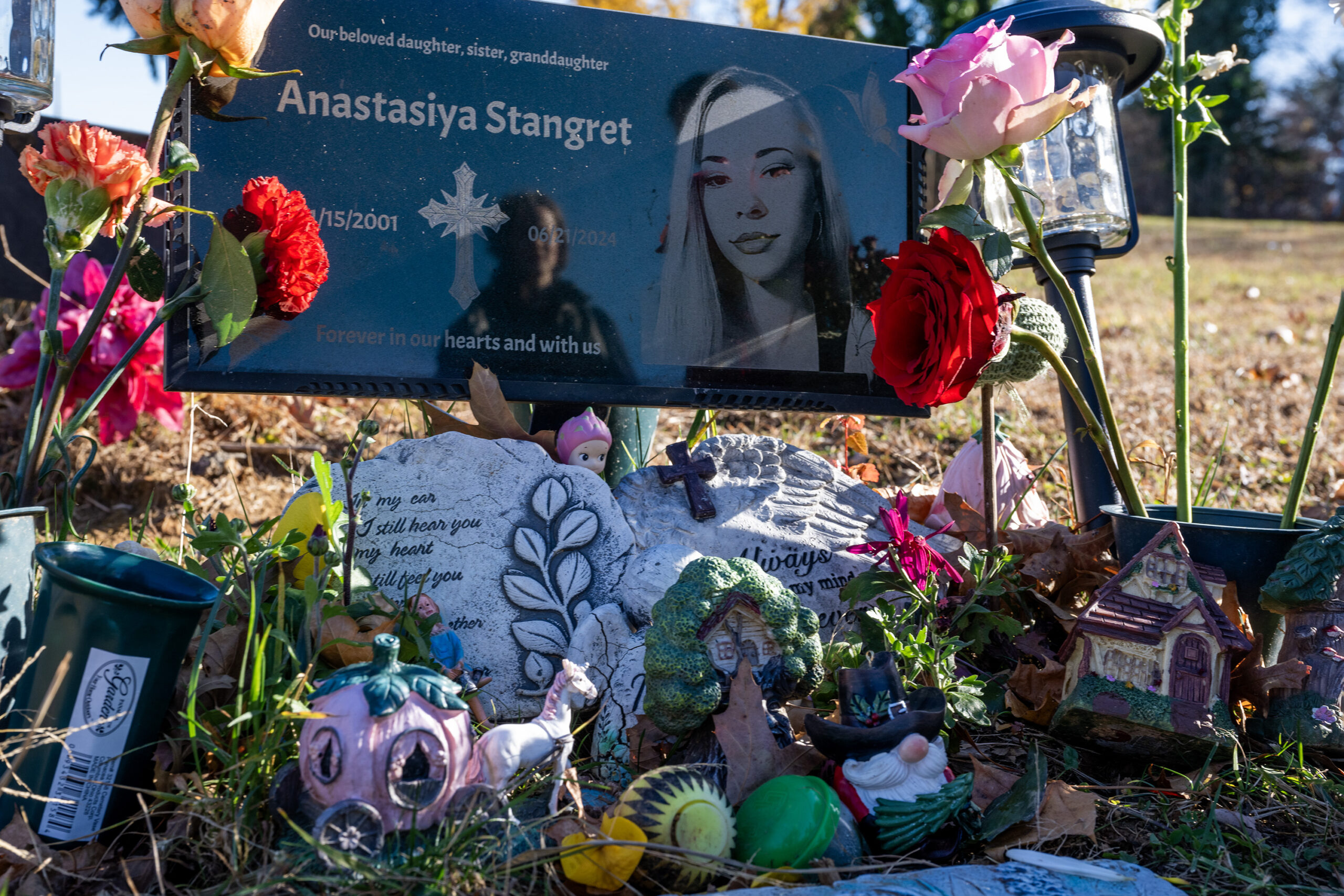 On a recent day, Dasha Stangret and her mother visited her sister’s grave at William Penn Cemetery. They fluffed up the fresh roses, rearranged the tiny fairy garden around her headstone, and lit a candle.