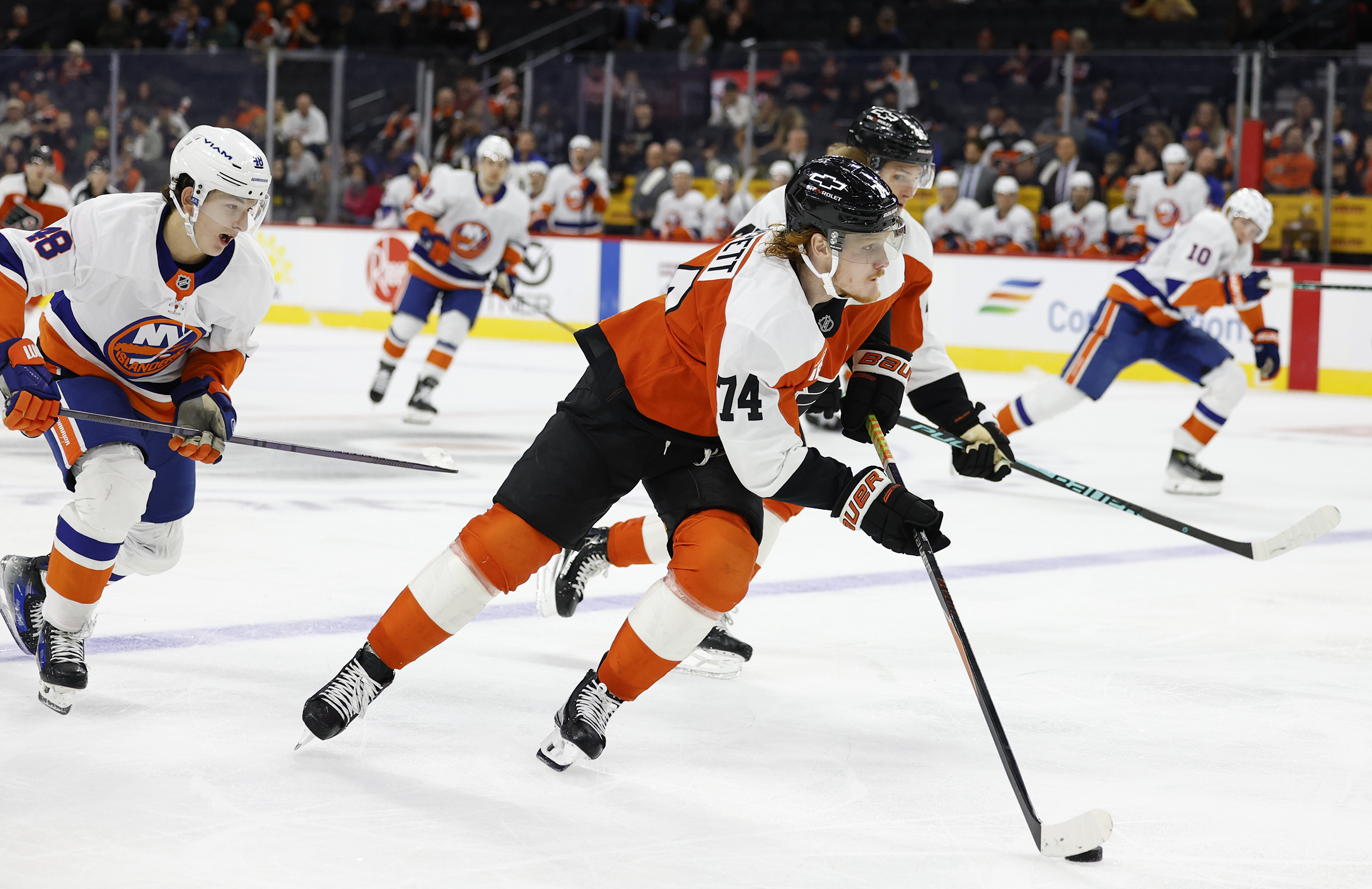 Once again, Tippett was clearly one of the Flyers’ best players as he used his legs and big body to create opportunities. On Thursday, the speedy winger scored with a burst through the neutral zone before firing off a shot from the right faceoff circle.