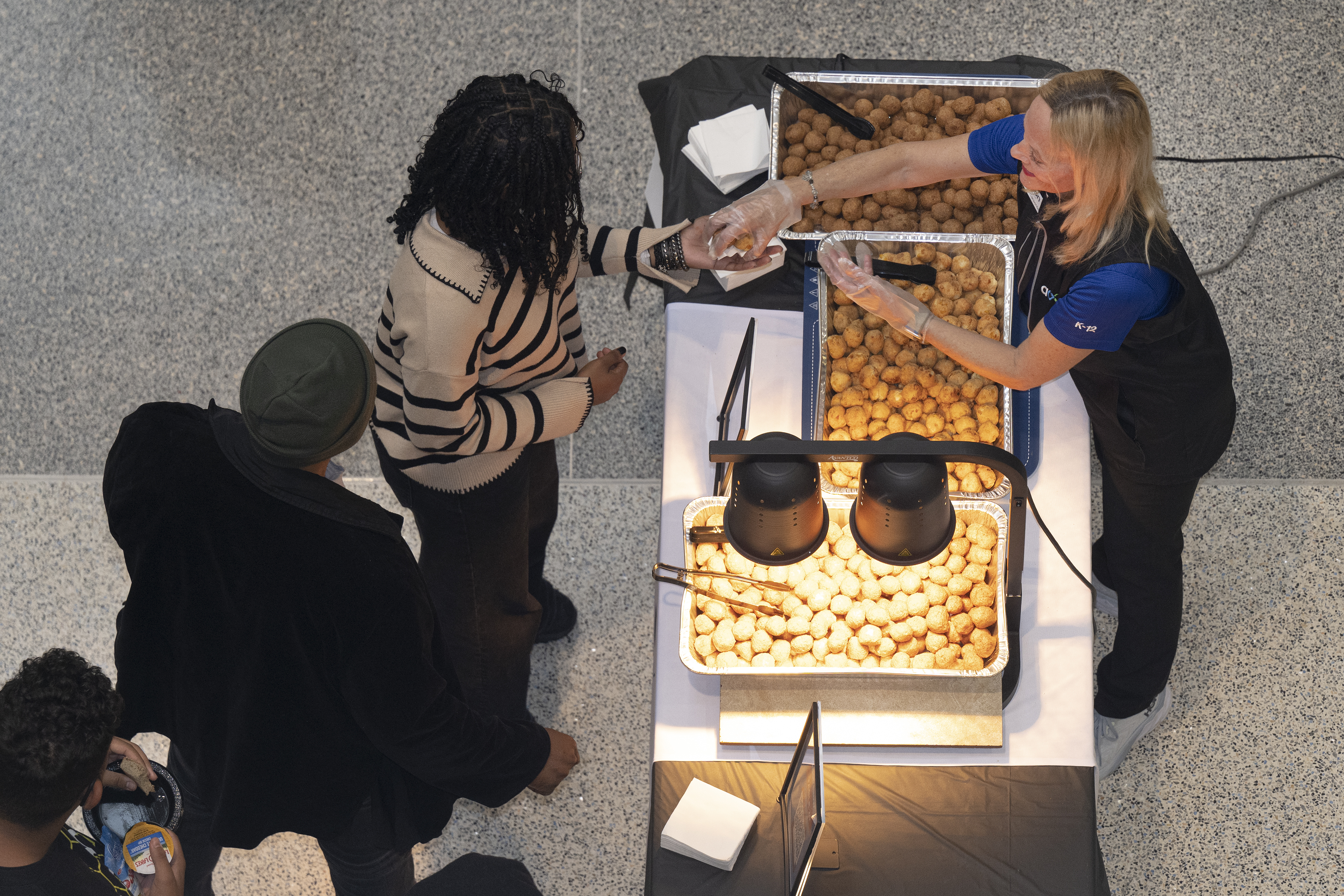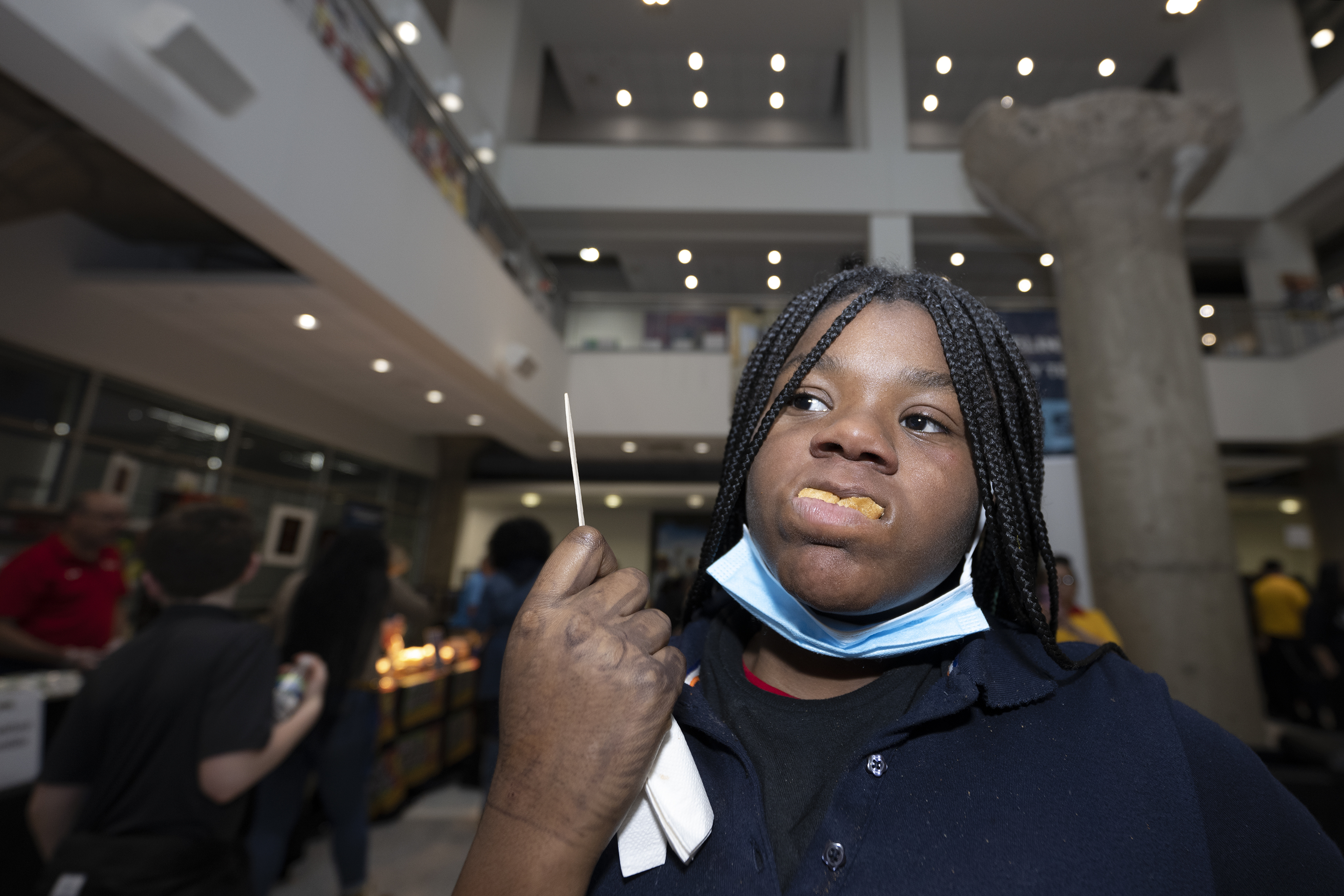 All around Norton, students scoped out offerings, tasted things that looked good, then recorded their thoughts after scanning QR codes on their phones. At one station, a man dressed as Elvis danced and encouraged students to try more.