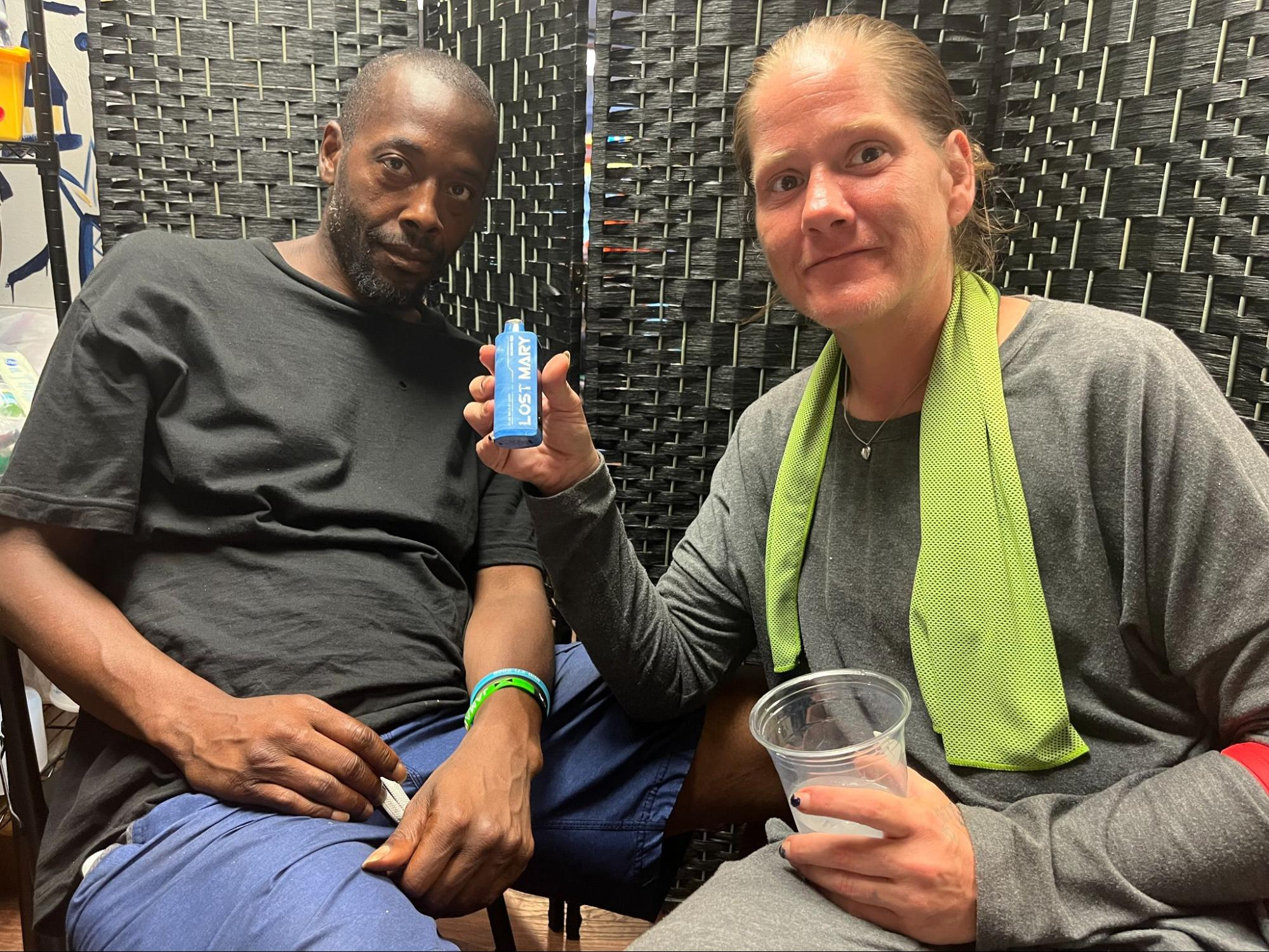 Megan McDonald and Jerome Hayward at a drop-in center in Philadelphia’s Kensington neighborhood.