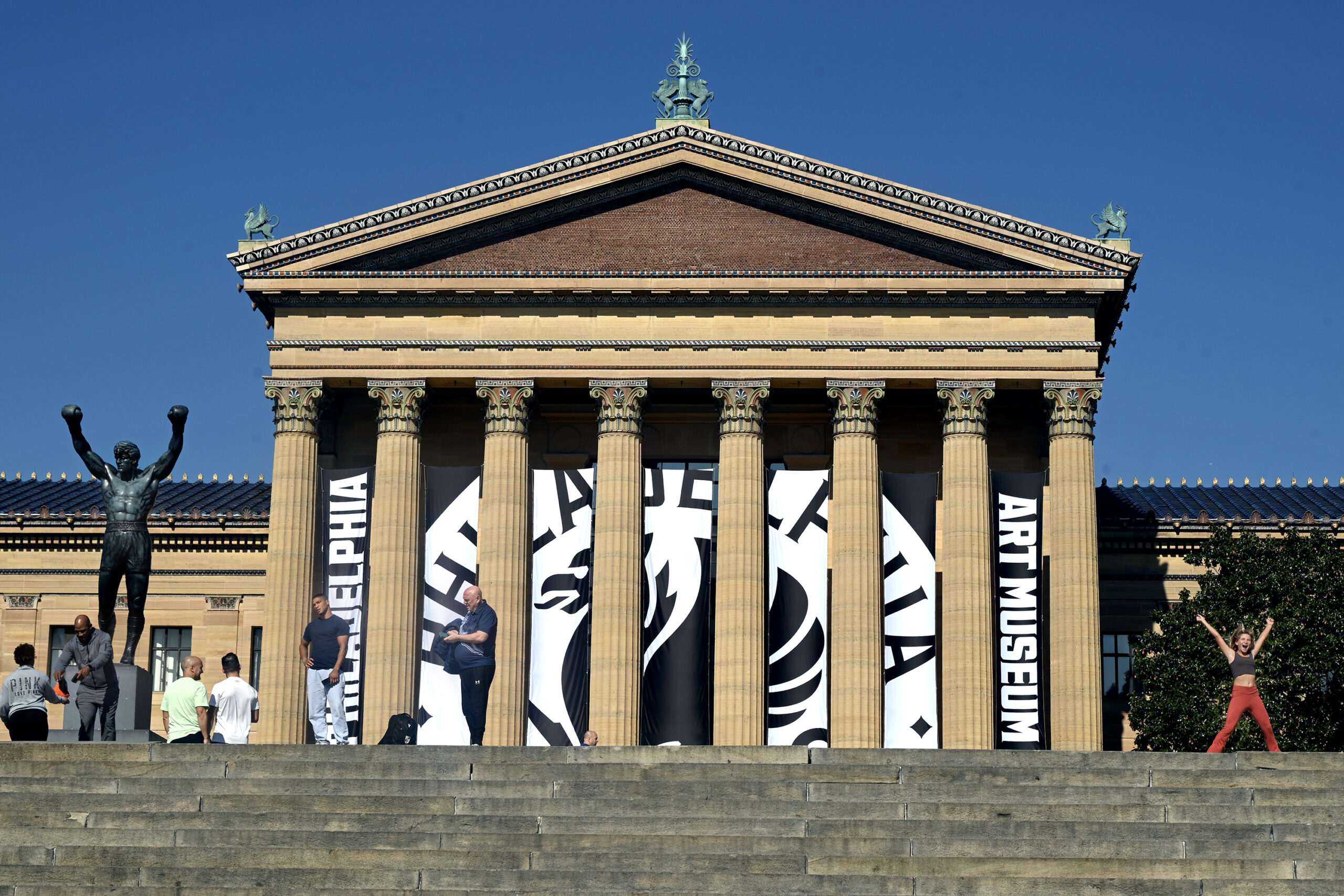 Signage at the east entrance to the Philadelphia Art Museum reflects the rebrand of the institution, which was formerly known as the Philadelphia Museum of Art.