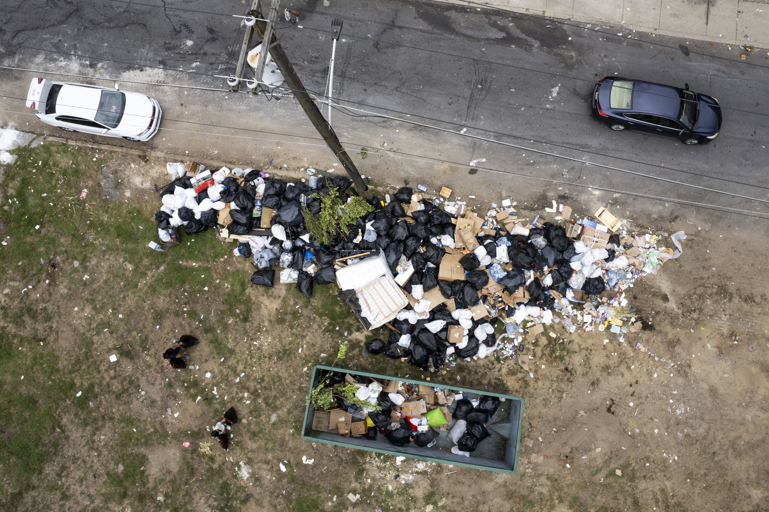 A large pile of trash collects at a city drop-off site during the AFSCME workers strike this summer.