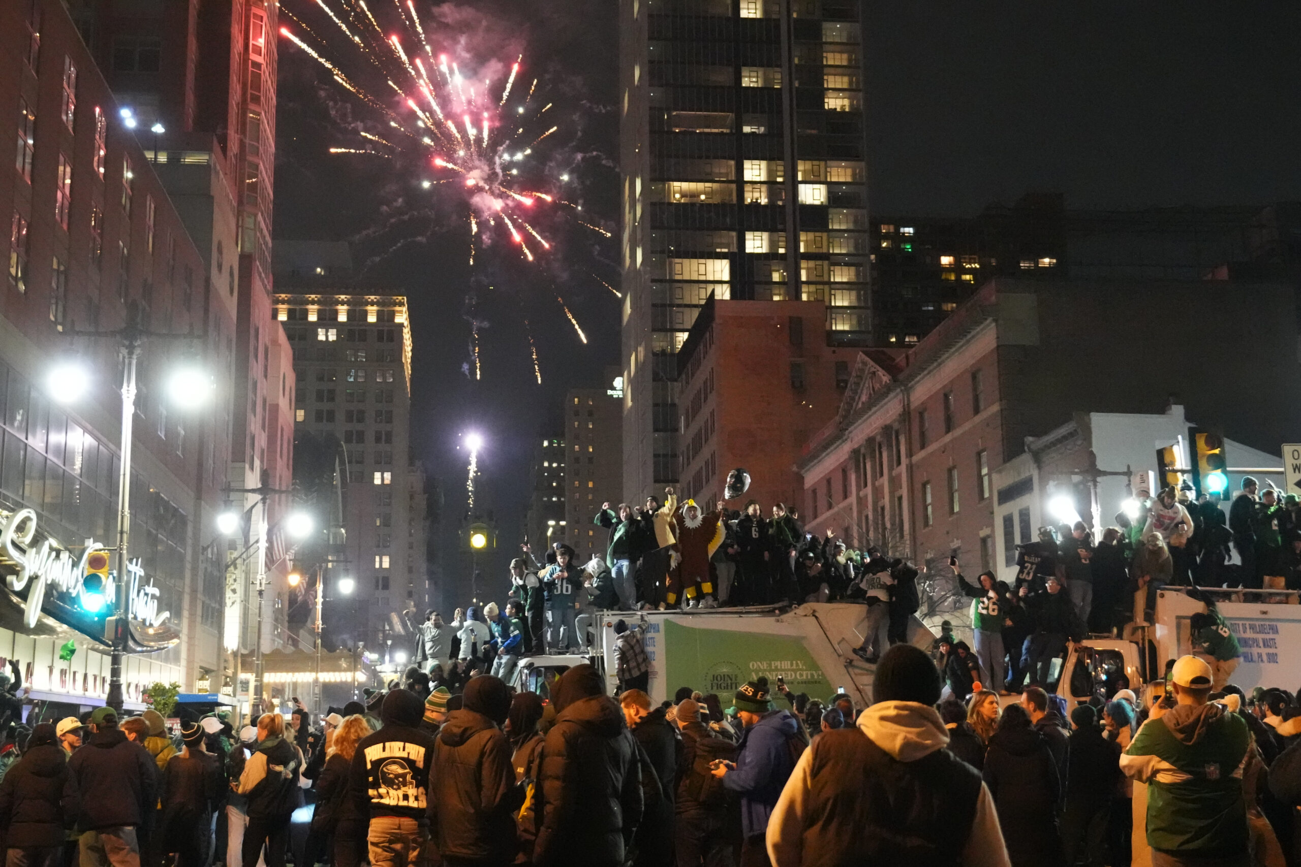 Finally, there was the parade, a Valentine’s Day love letter to the Eagles from Philadelphia. Among the more memorable moments was when Birds general manager Howie Roseman was hit in the head with a can of beer thrown from the crowd. He took his battle scar in pride, proclaiming from the steps of the Philadelphia Art Museum: “I bleed for this city.”
