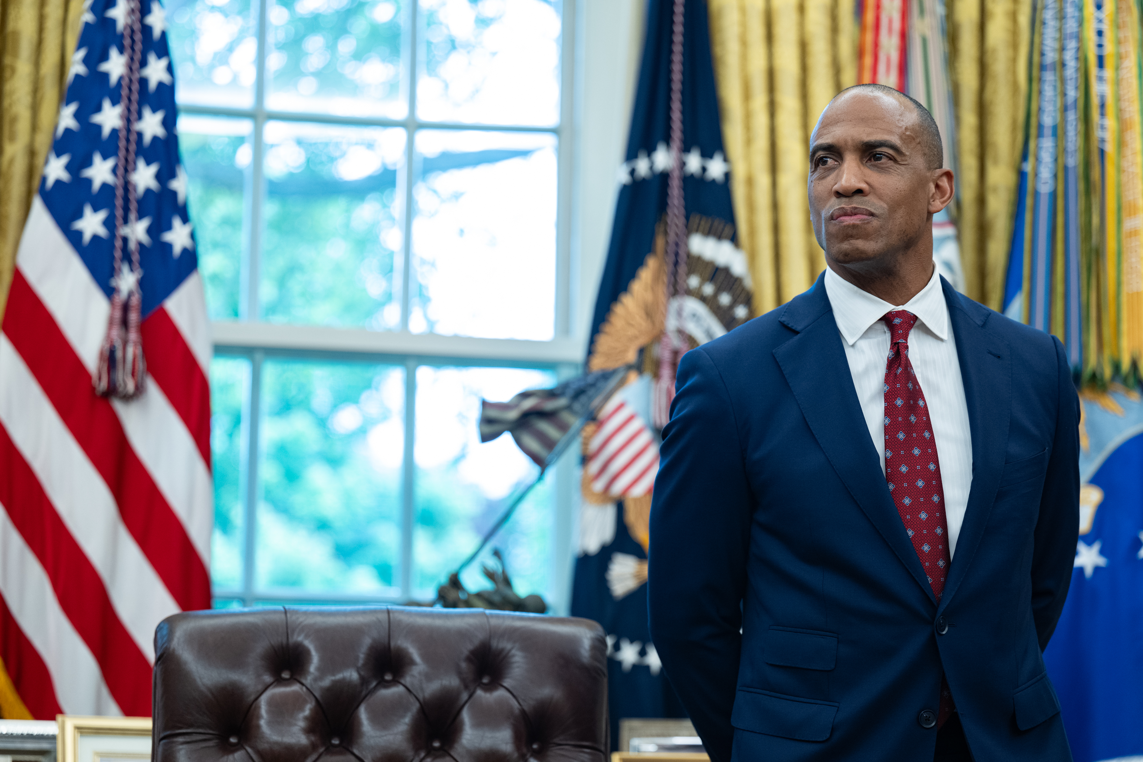 Secretary of Housing and Urban Development Scott Turner in the Oval Office on May 5.