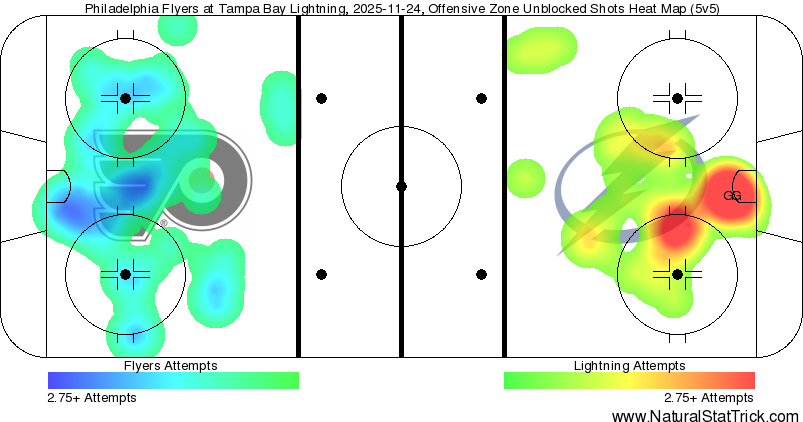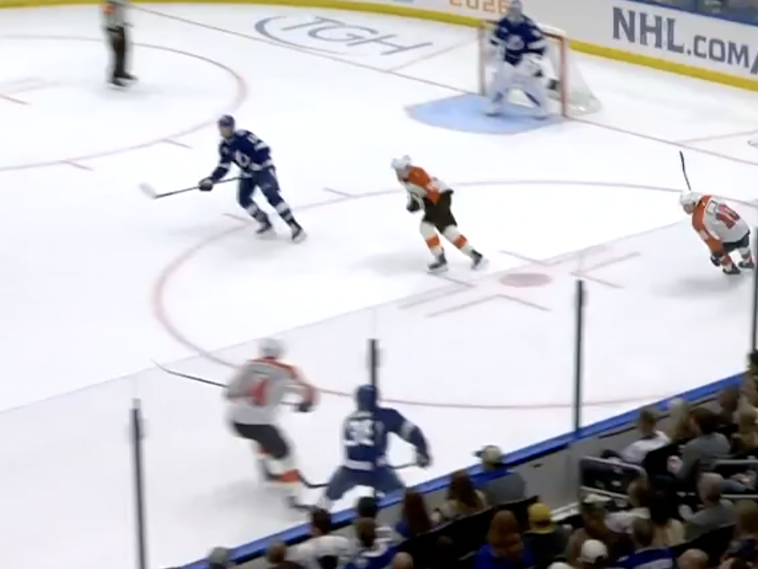 Ersson started the game brilliantly, shutting down Marat Khusnutdinov from in close just 14 seconds in, followed by a couple of 10-bell saves on Sean Kuraly from point-blank range that showcased the netminder’s athleticism. Ersson, who was always going to need to have a big game given the Flyers’ tired legs on a road back-to-back, was keeping the Flyers in it.