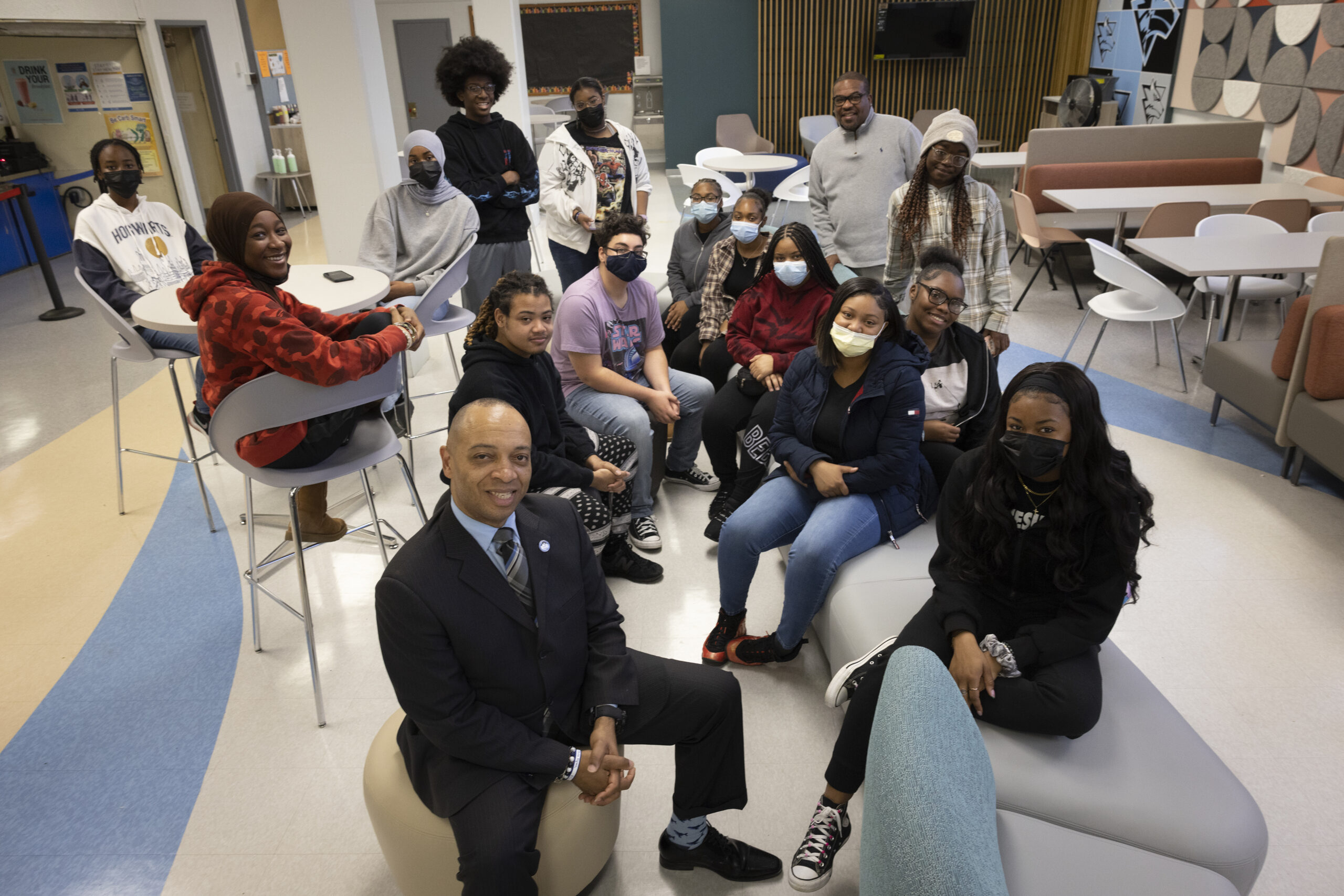 On the school’s walls are pocks of chipped paint, yes, but also the colorful detritus of a small but vibrant student population: a poster composed of tiny handprints in honor of Black History Month; a “Blizzard of Positivity” — handwritten messages reading “Smile” and “Hugs” and “Help your friends when they fall.”