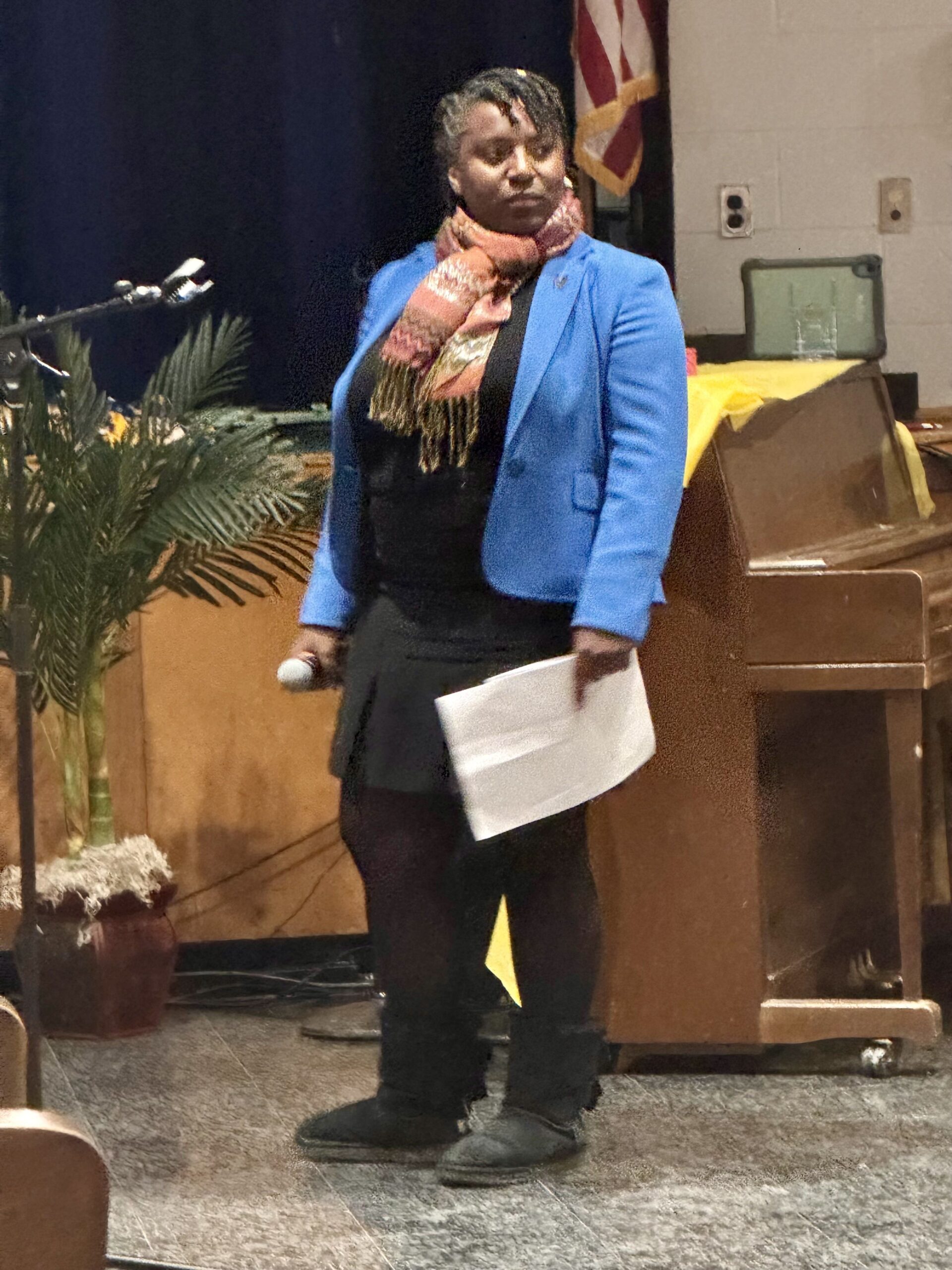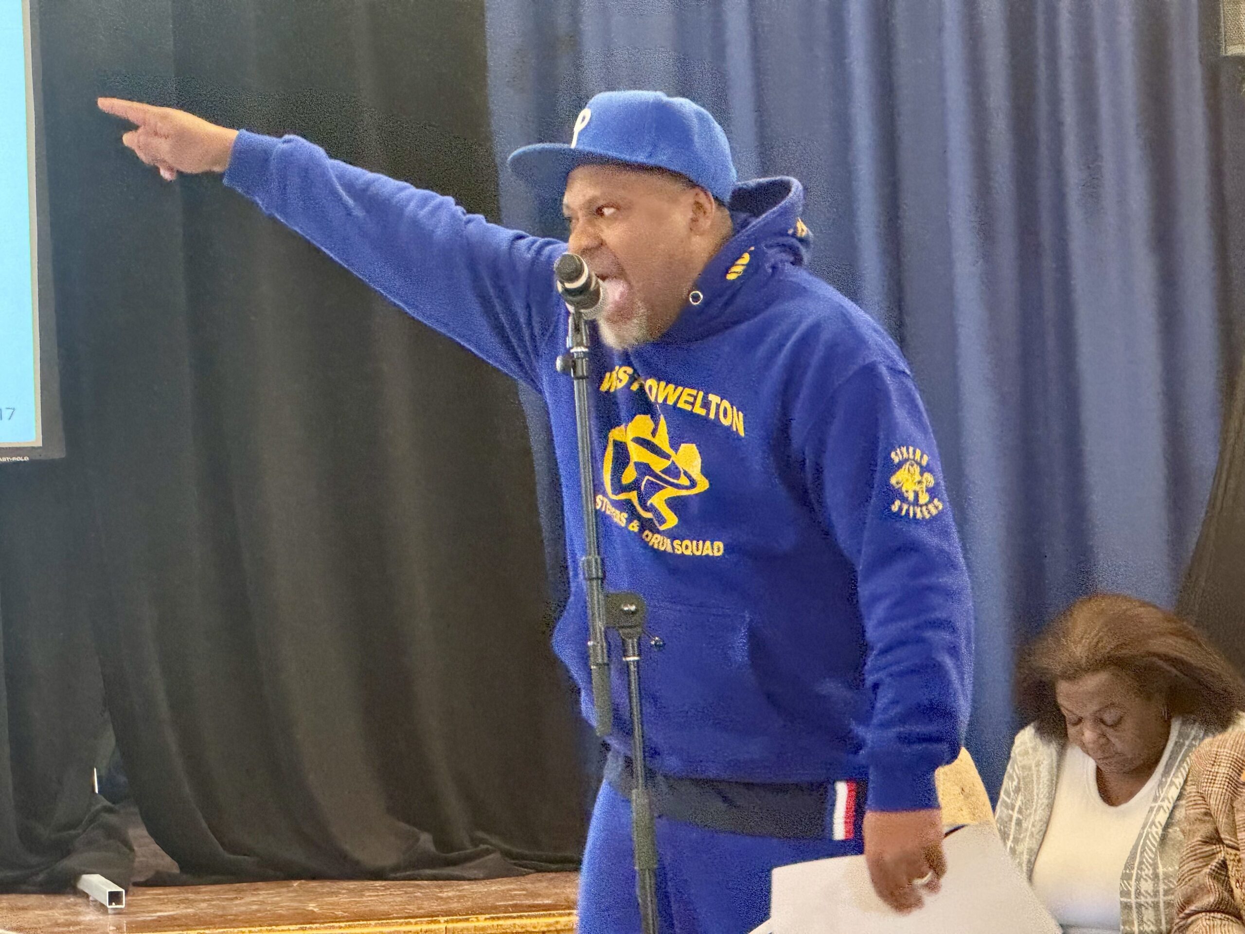 The poster was presented to district officials earlier this month at a community meeting held in the school’s wood-seated auditorium.