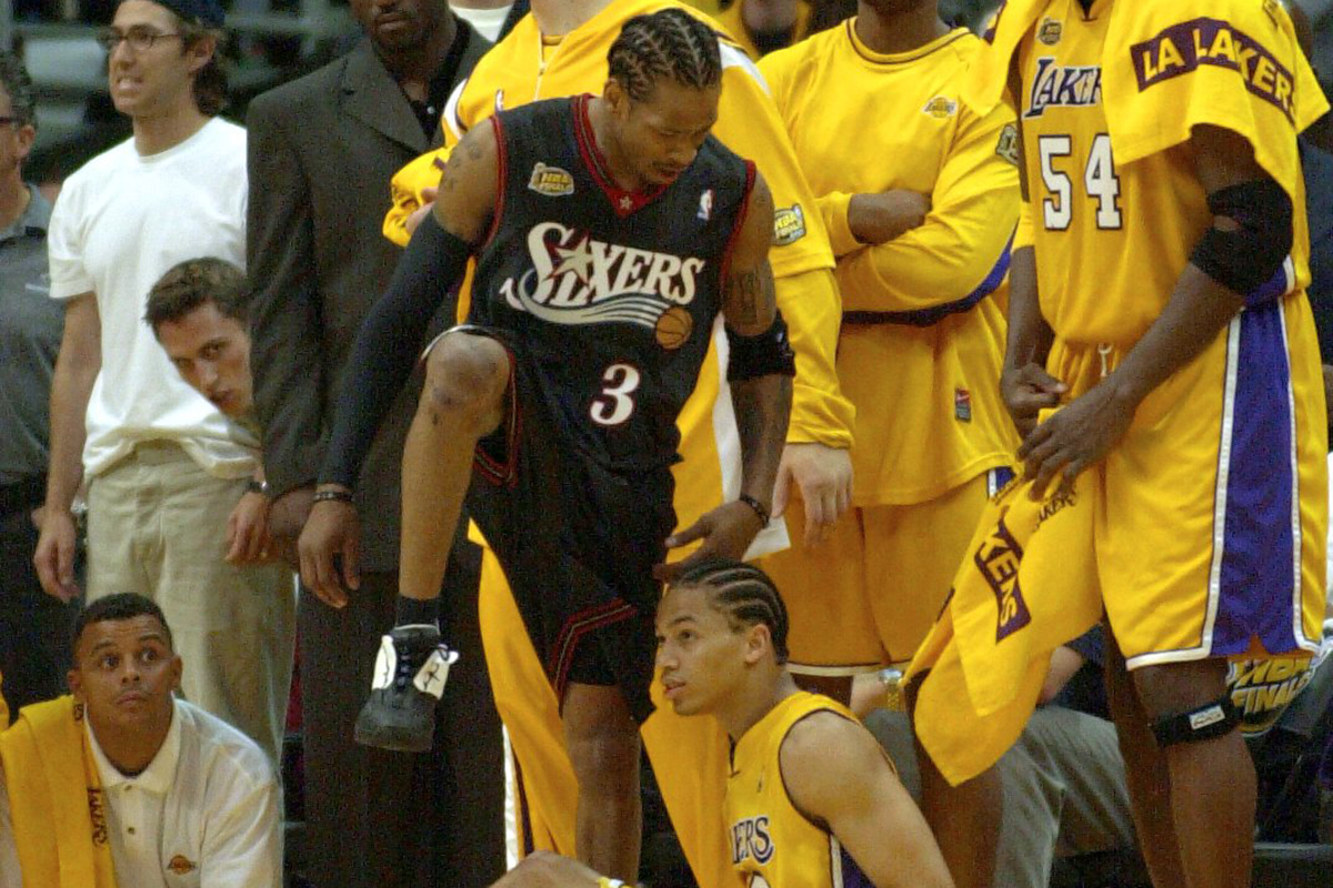 Allen Iverson was wearing the Reebok “Answer IVs” during Game 1 of the 2001 NBA Finals.