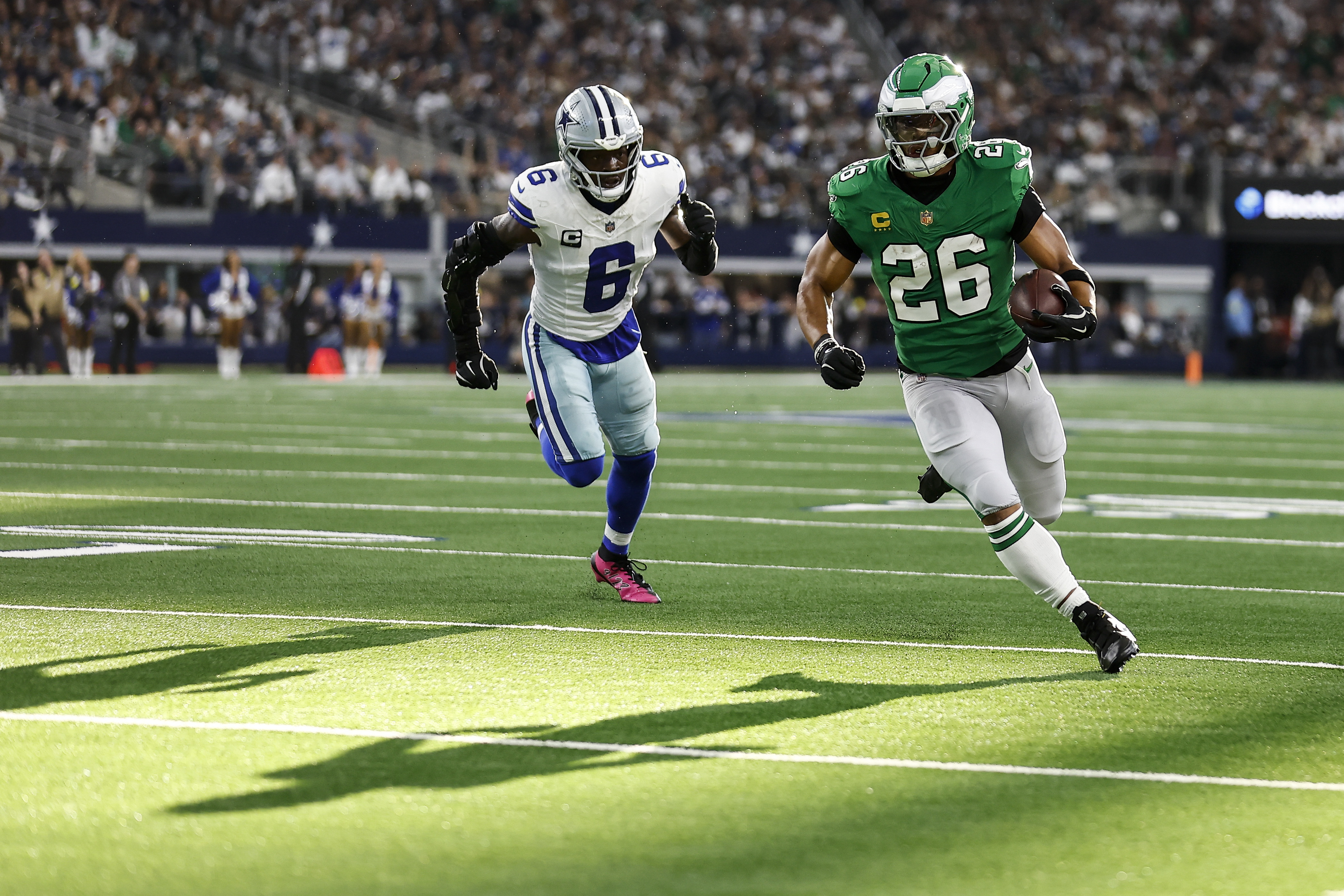 Saquon Barkley averaged just 2.2 yards per carry against the Cowboys, the lowest that he’s had in a game since he was with the Giants in December 2023.