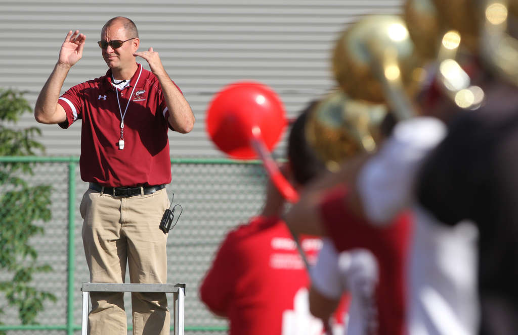 Matthew Brunner, athletic bands director, leads a practice in 2018.
