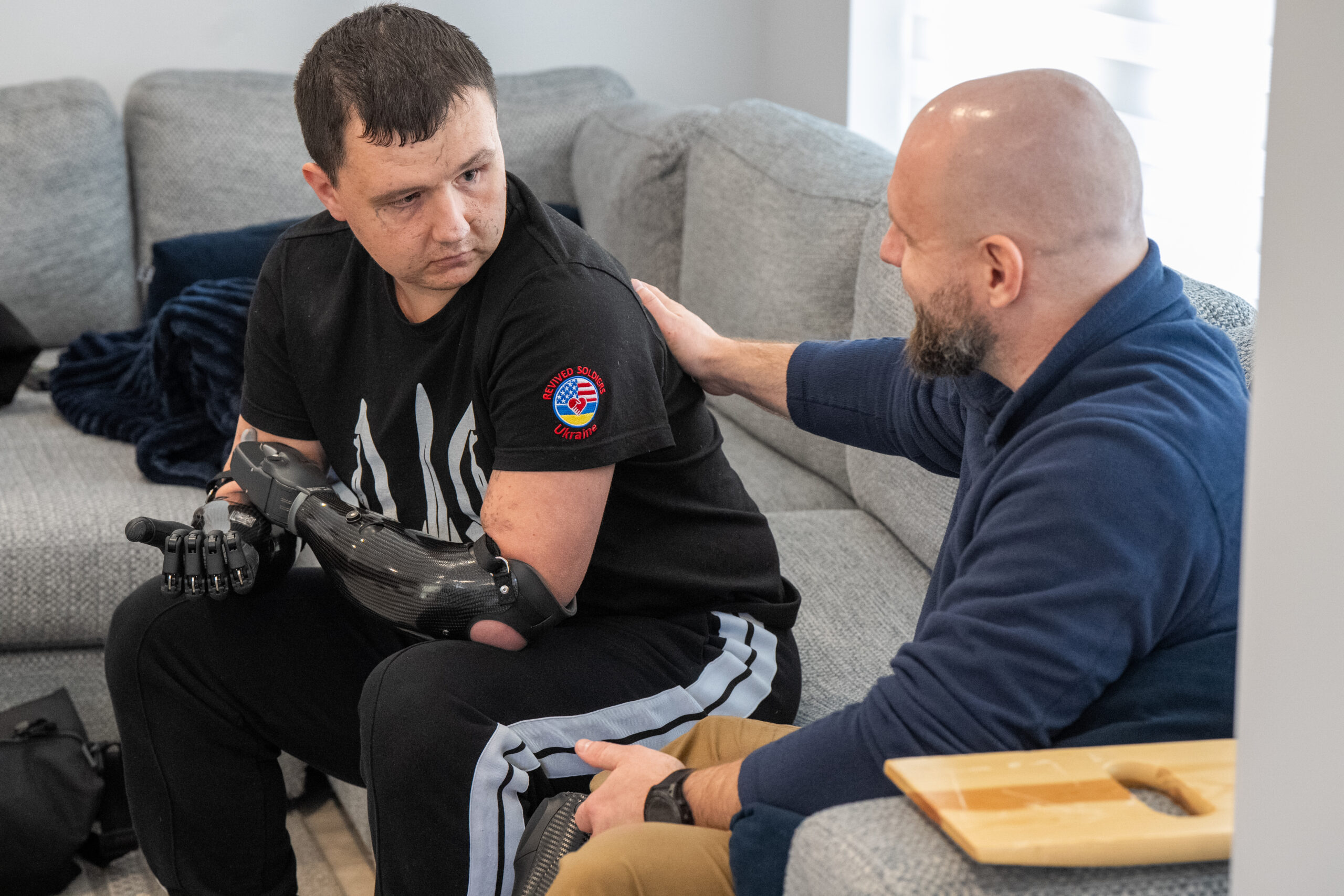 Revived Soldiers Ukraine flew Romanenko and his partner to Philadelphia. At Wills Eye Hospital, a Ukrainian-speaking doctor, Michael Klufas, helped to restore vision in his right eye. Then, Prosthetic Innovations in Eddystone, Delaware County, outfitted him with bionic arms. “I’m very grateful to the Ukrainian and American doctors,” Romanenko said in Ukrainian, as Haiduk translated.