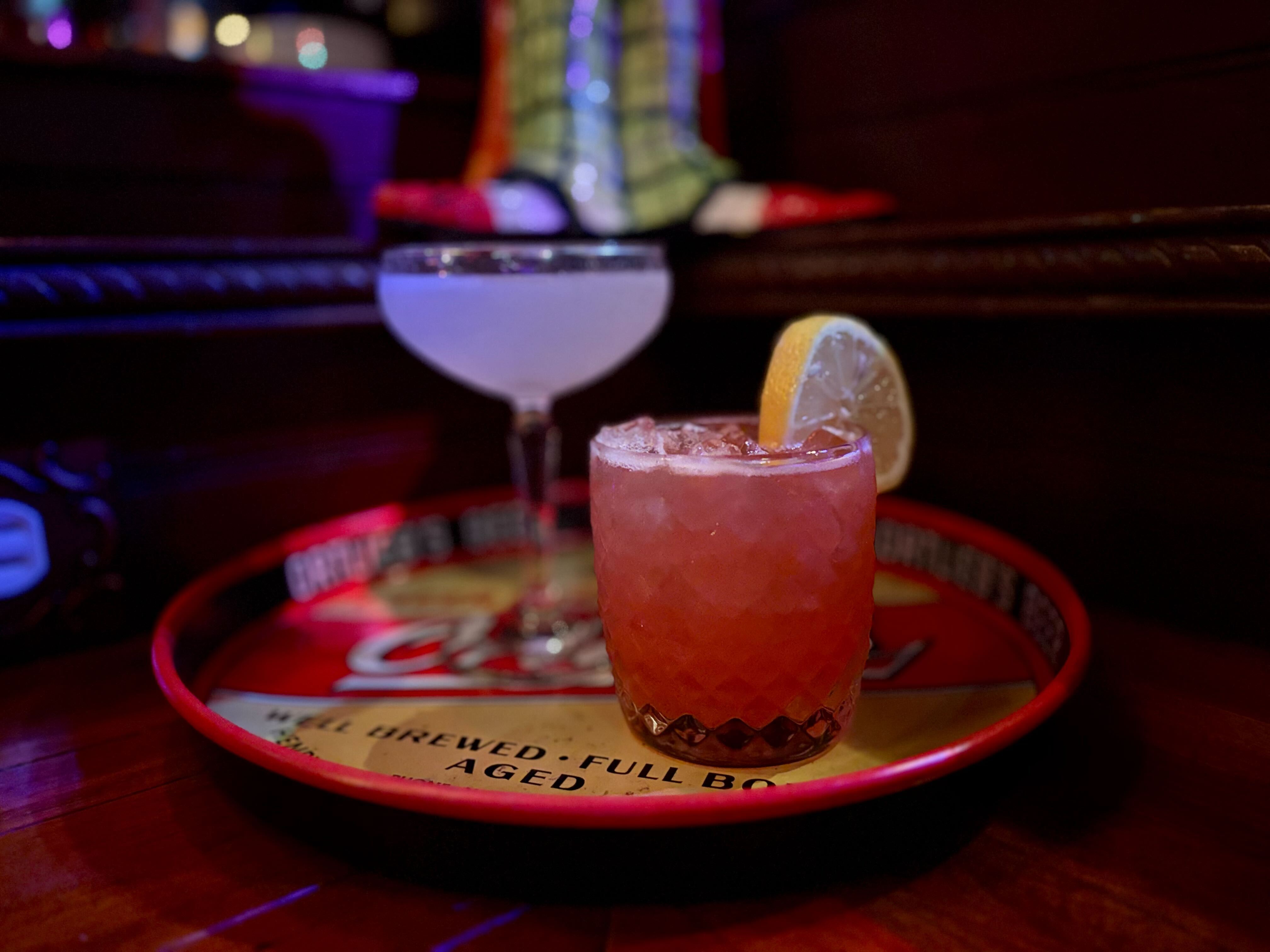 The Tropical Hot Dog Too (left) and Endless Nightmare (right) cocktails from Neon Clown Dream Lounge.