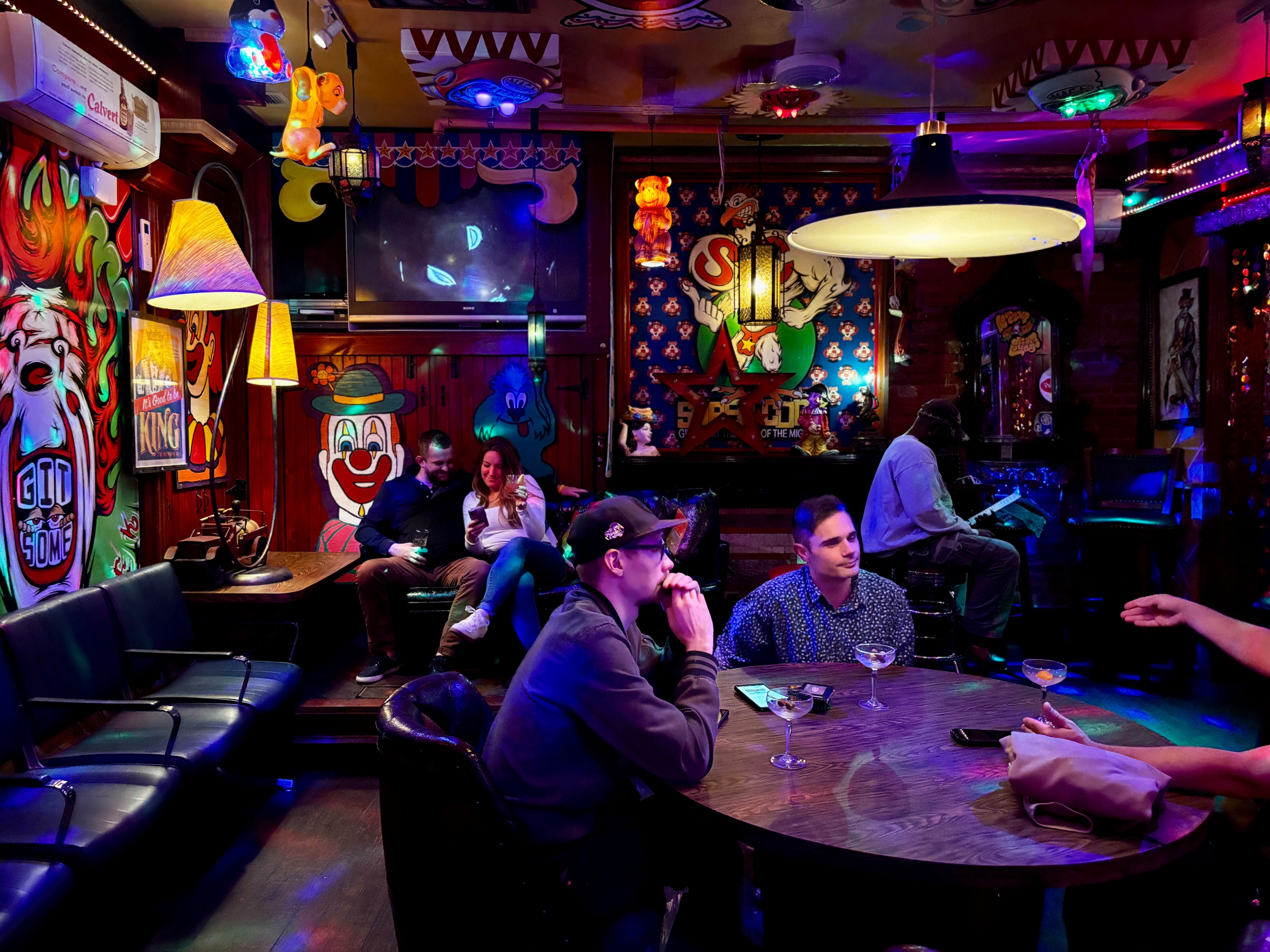The Neon Clown Dream Lounge never has a cover, and the only food on offer are $2 hot dogs. The drink menu has 12 cocktails with names that conjure up images of killer clowns and carnival food, like “Endless Nightmare,” “Witching Hour,” or “Tropical Hot Dog Too.”