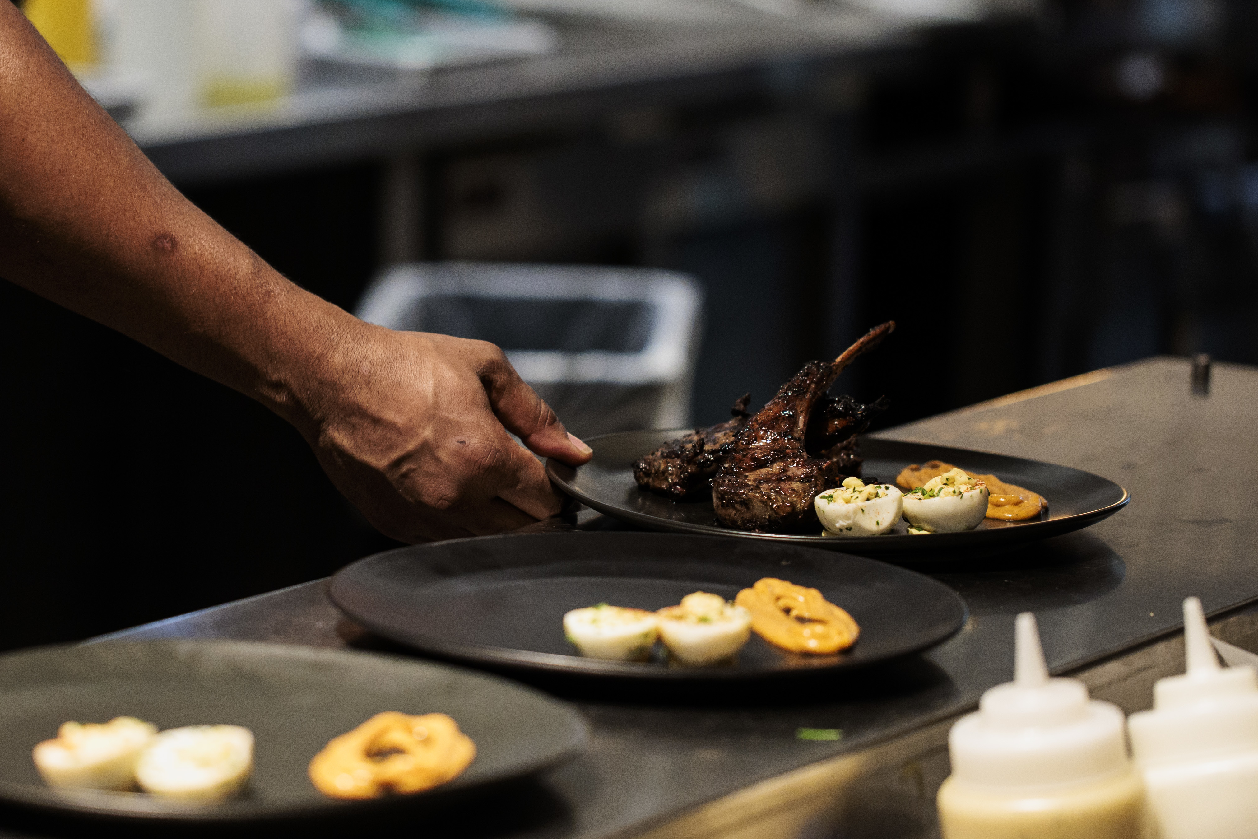 Lamb chops and deviled eggs are prepared for a preview dinner at Kitchen & Kocktails.