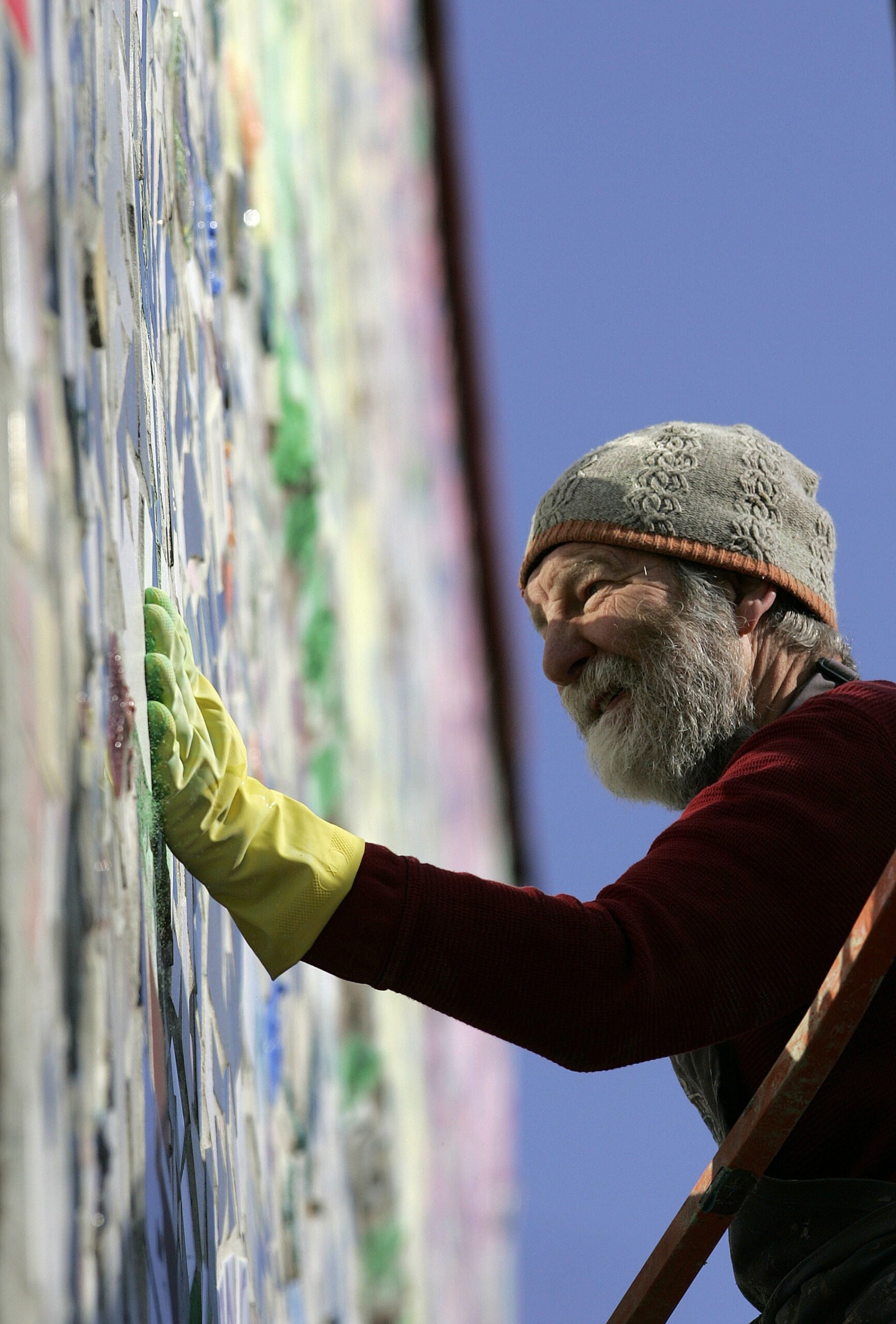 That idea, he told the Daily News, came from Woodstock, N.Y.-based artist Clarence Schmidt, who covered the outside of his home in broken mirrors embedded in tar.