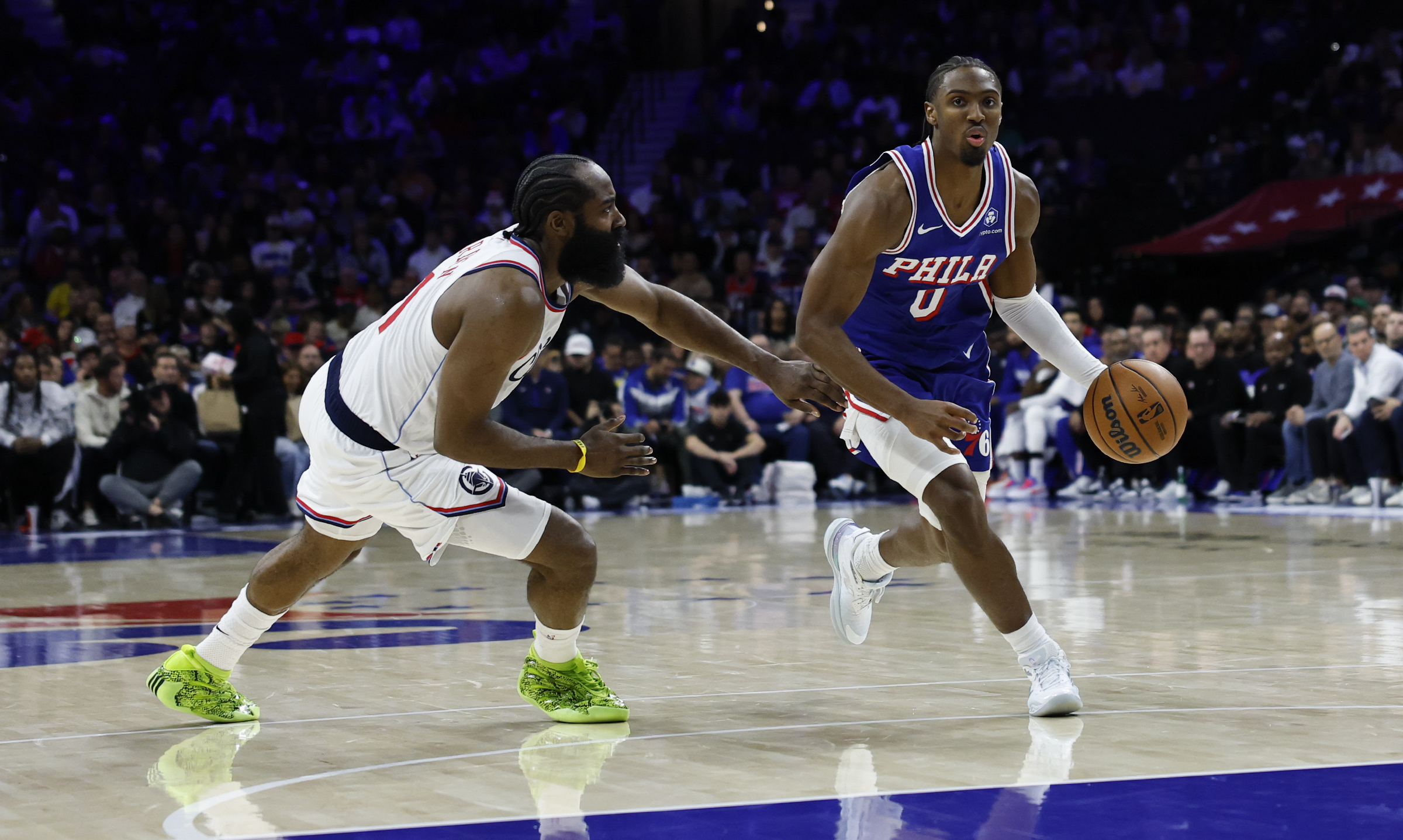 Tyrese Maxey (left) and VJ Edgecombe form a potent combination at guard for the Sixers.