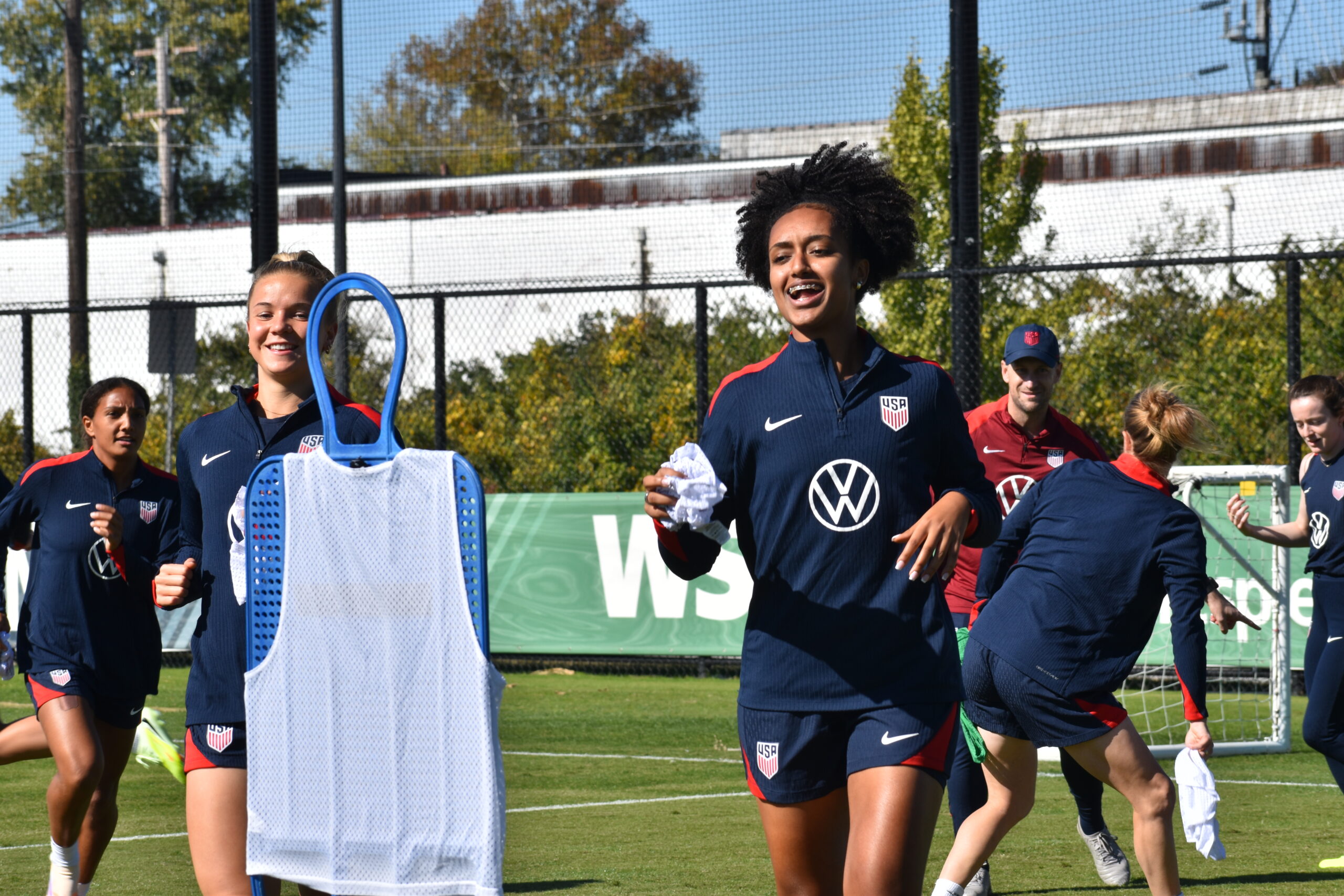 Lily Yohannes (center) at work with the U.S. women’s soccer team in Chester in October.