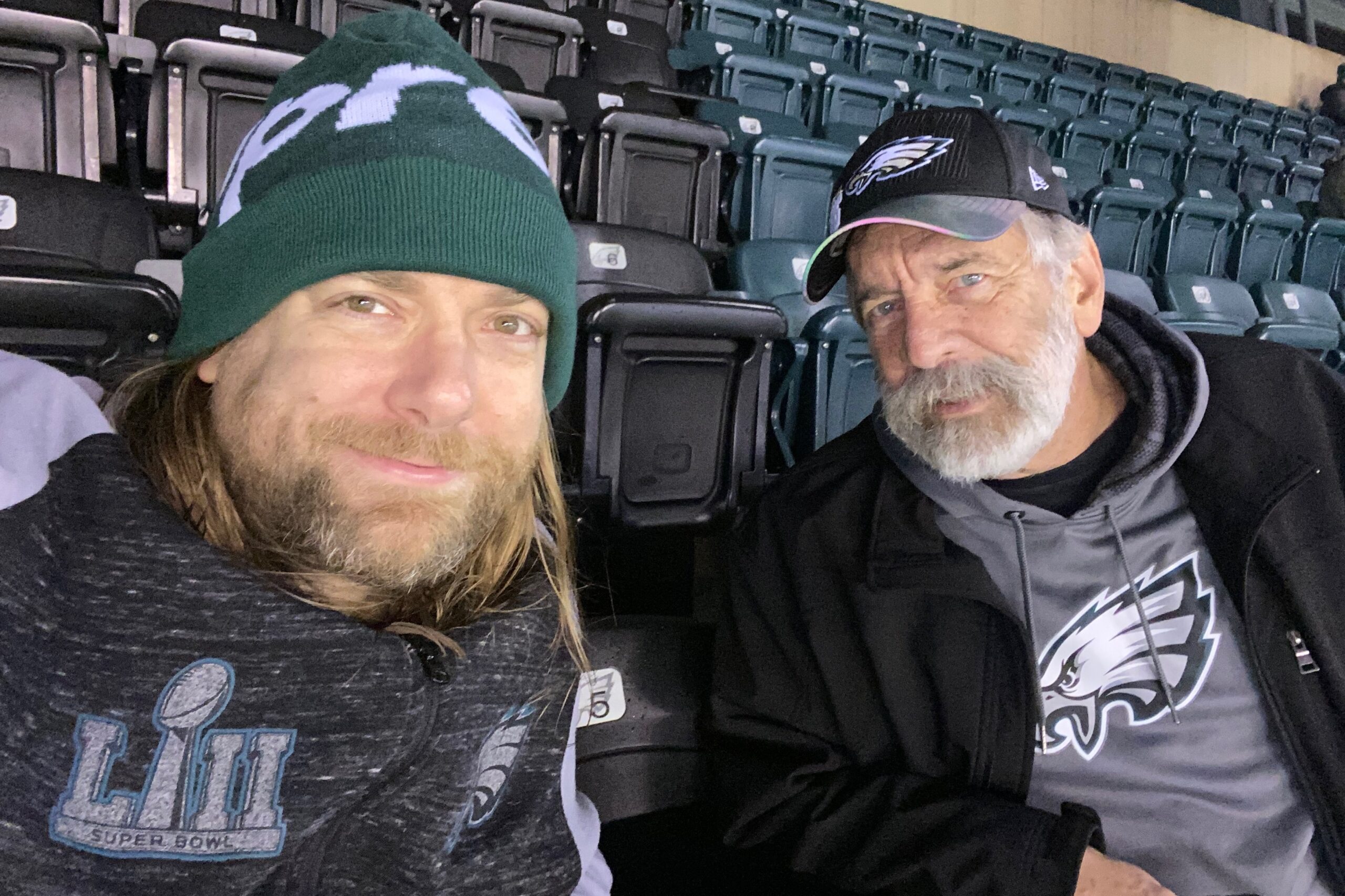 Mr. McQuade (left) and his father, Drew, shared a love of Philly sports and creative writing.