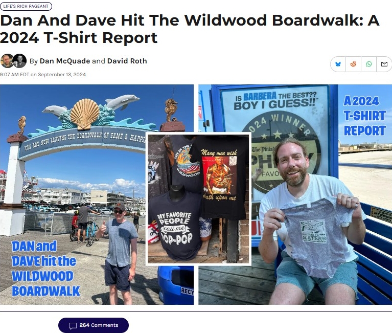 He was a vintage bootleg T-shirt fashionista, and his personal collection numbered around 150. He named Oscar’s Tavern on Sansom Street as his favorite bar in a recent podcast interview and said he would reluctantly pick a pretzel over a cheesesteak if that was the choice.