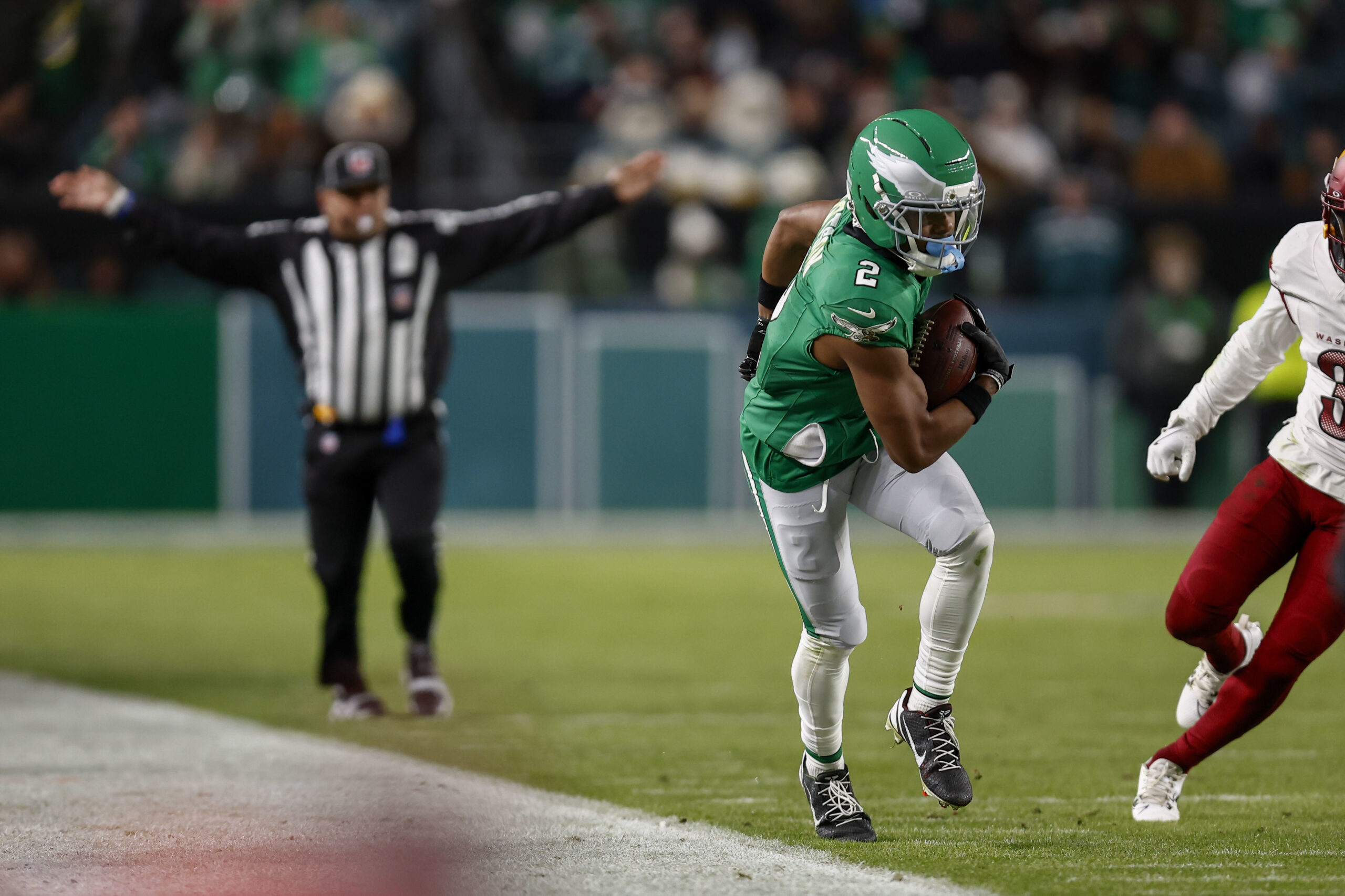 I think more of Hurts on designed runs, and a sprinkling in of the more north-to-south Tank Bigsby, could further buoy a run offense that has shown marginal improvement over the last month. I wouldn’t be surprised to see Patullo open with a fair amount of empty sets. Hurts has operated well out of that formation. It forces defenses to have to account for his legs on draws or scrambles if they’re going to match in man coverage.