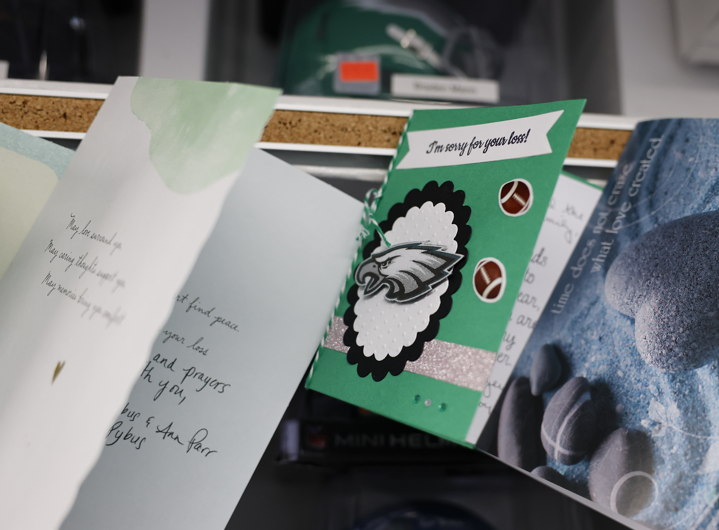 Inside, he taped a signed Harold Carmichael Topps card with an inscription above: “Hopefully this will help.”