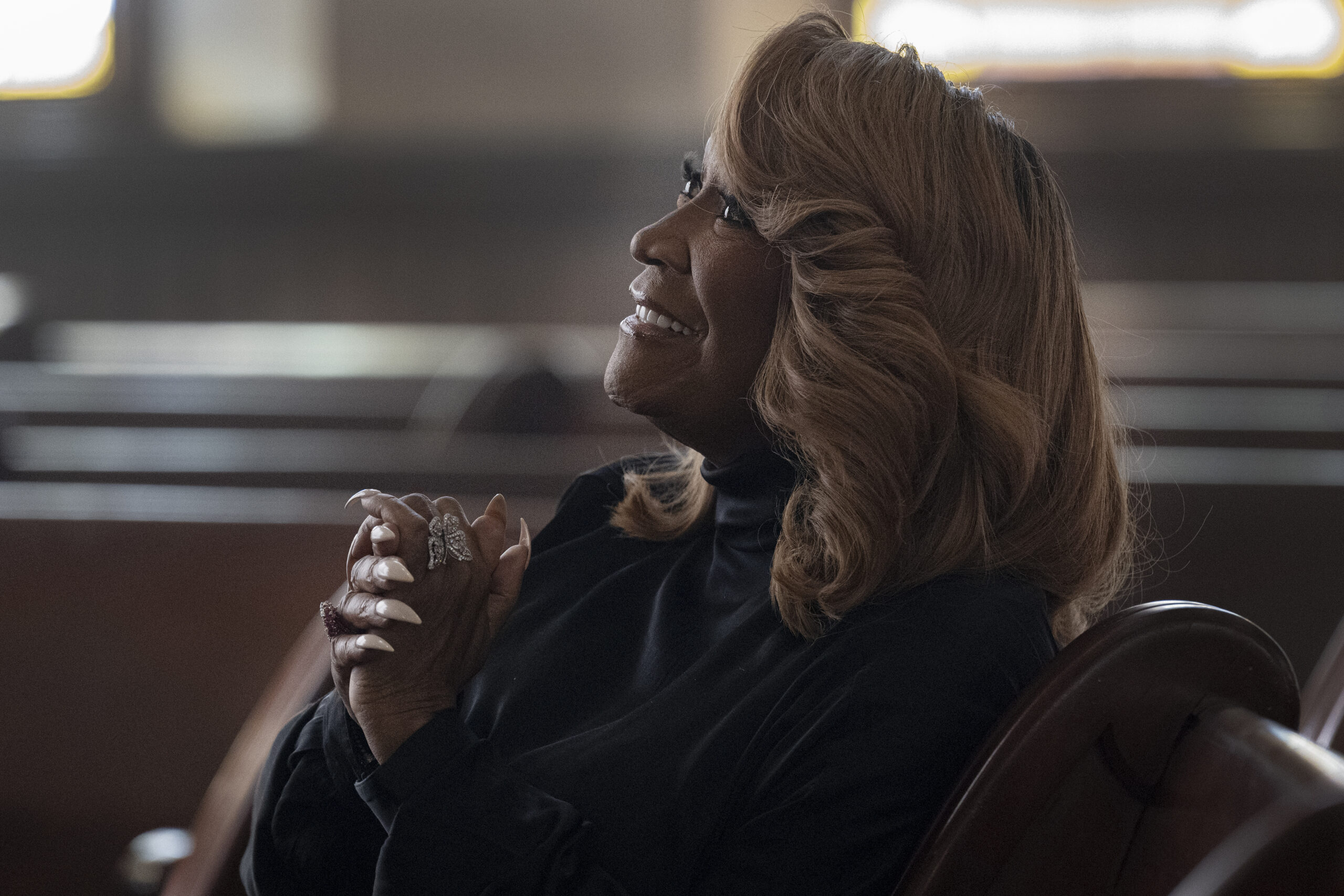 LaBelle’s stockinged footstepsare deliberate, her unblinking eyes affixed on the organ pipes in front of her.