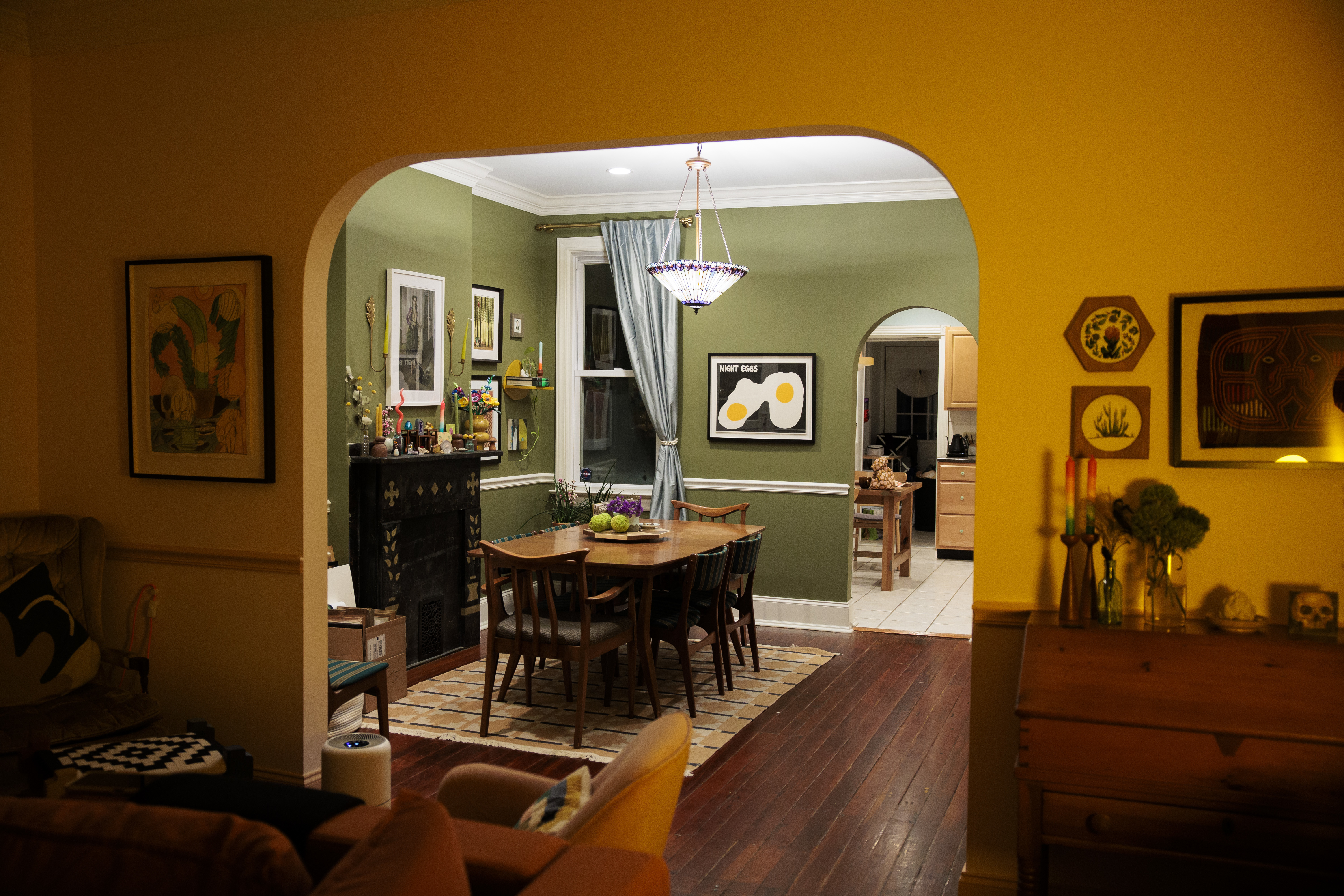 The appeal: The couple loved the look of the first floor, which includes two fireplaces. “Neither of them are working,” said Lubniewski, but the mantles are “so beautiful.” The one in the living room has its original facade.